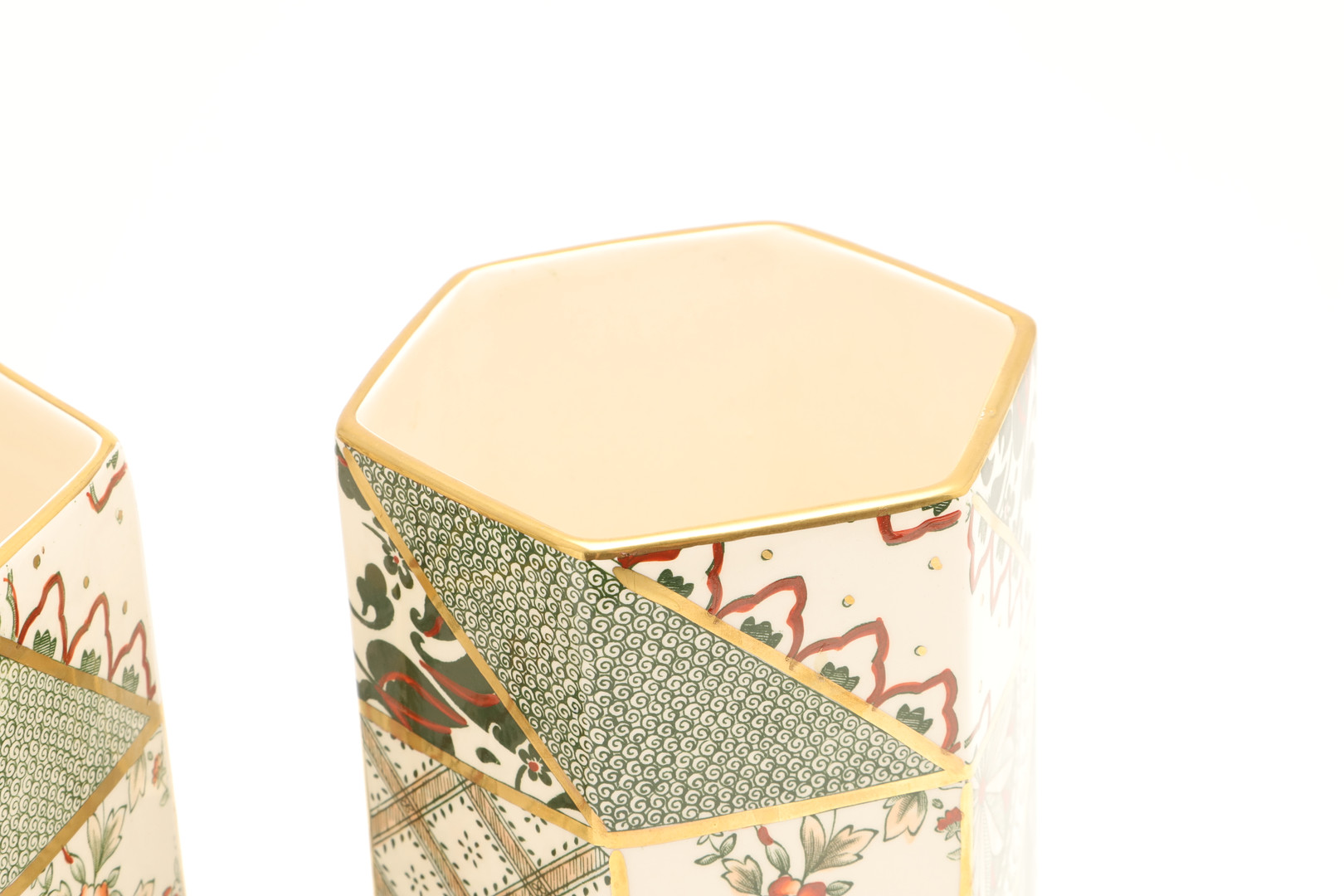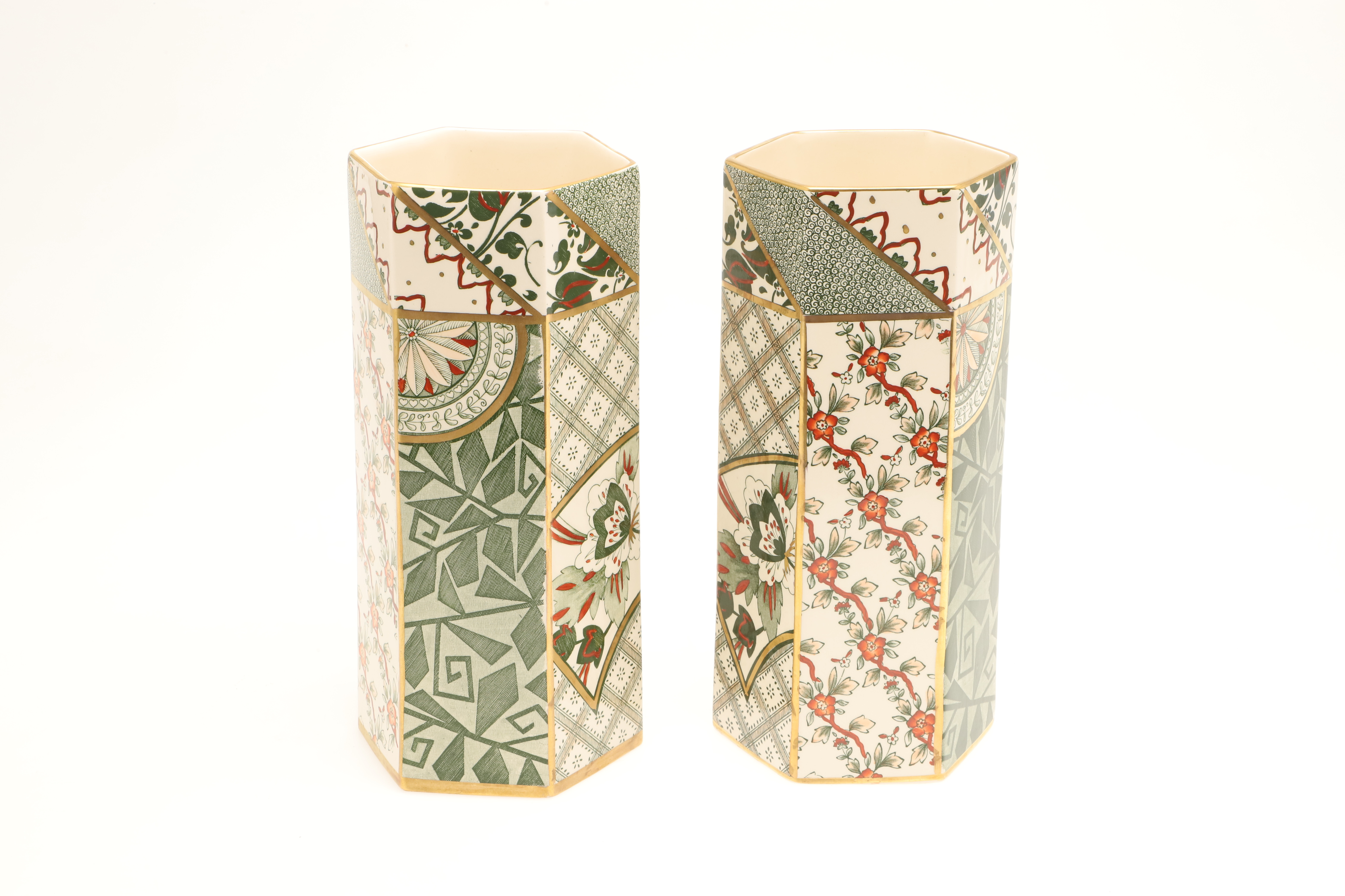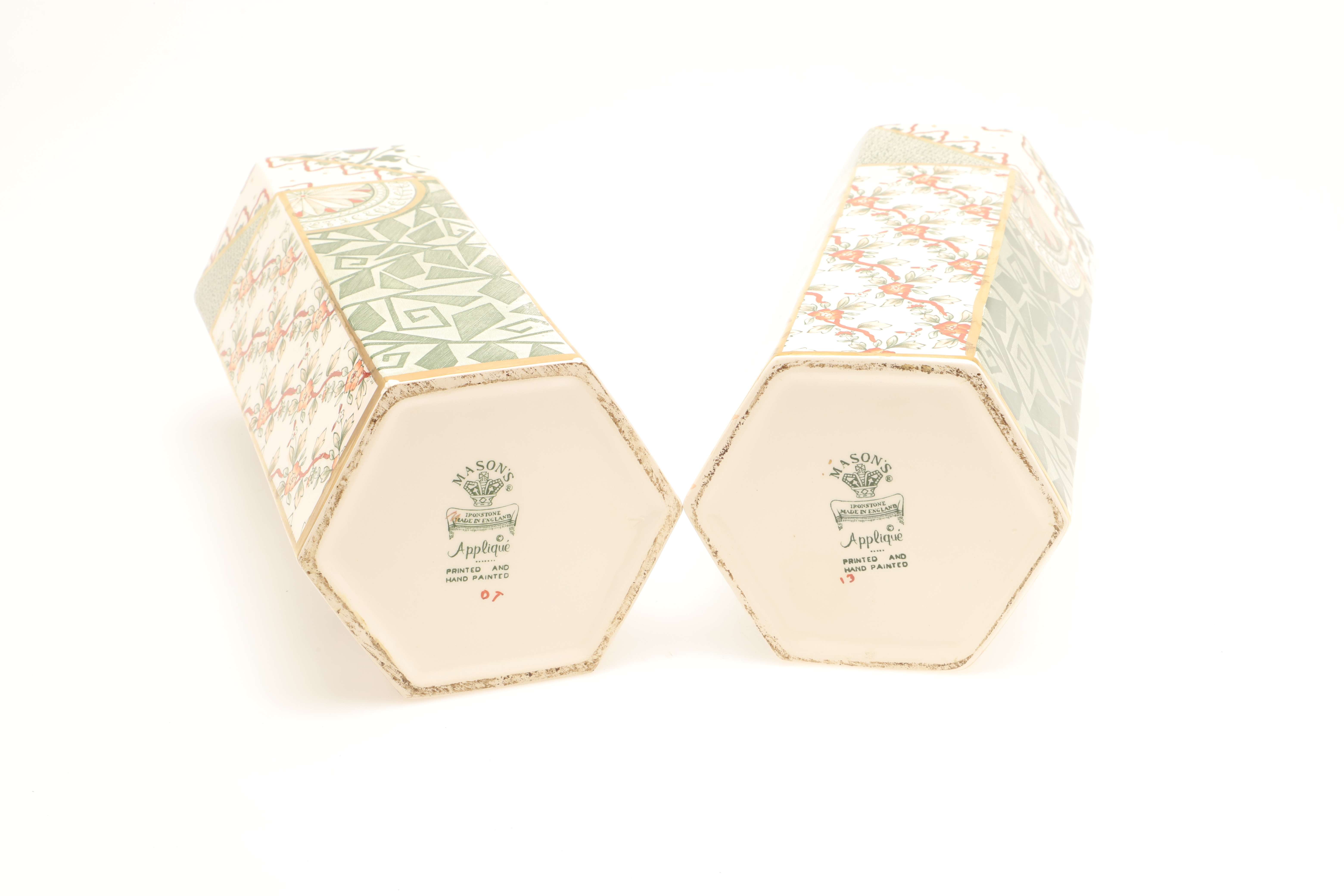 4471475. A PAIR OF MASONS HEXAGONAL VASES.