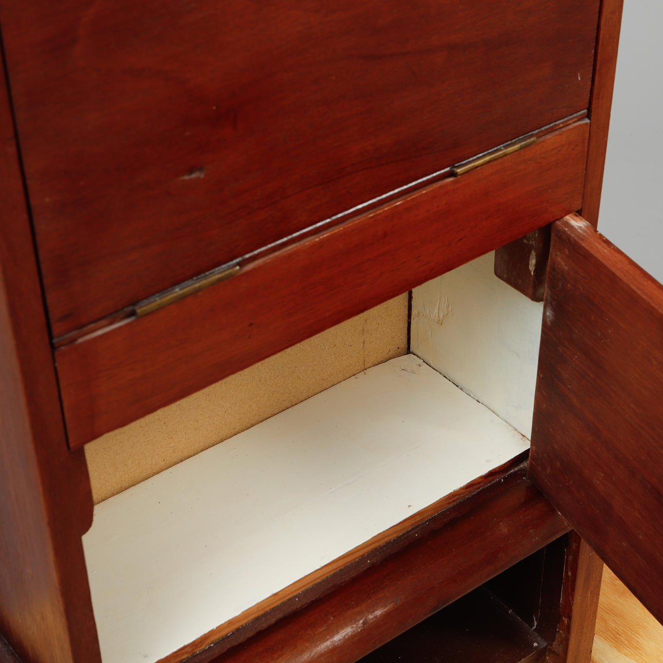 Mahogany and flint. Length 45, width 27, height 176 cm.
