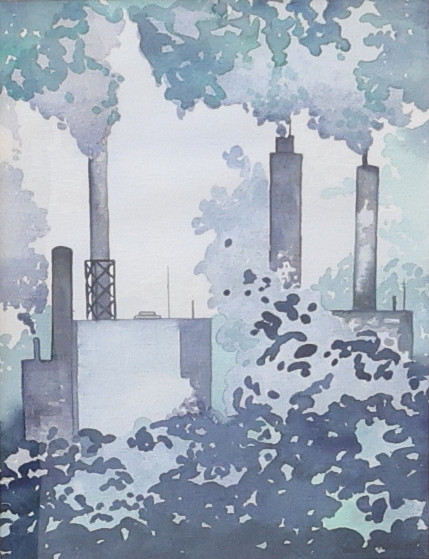4471889. ANETTE HOLMQVIST. “Factory Study”, watercolour, signed.