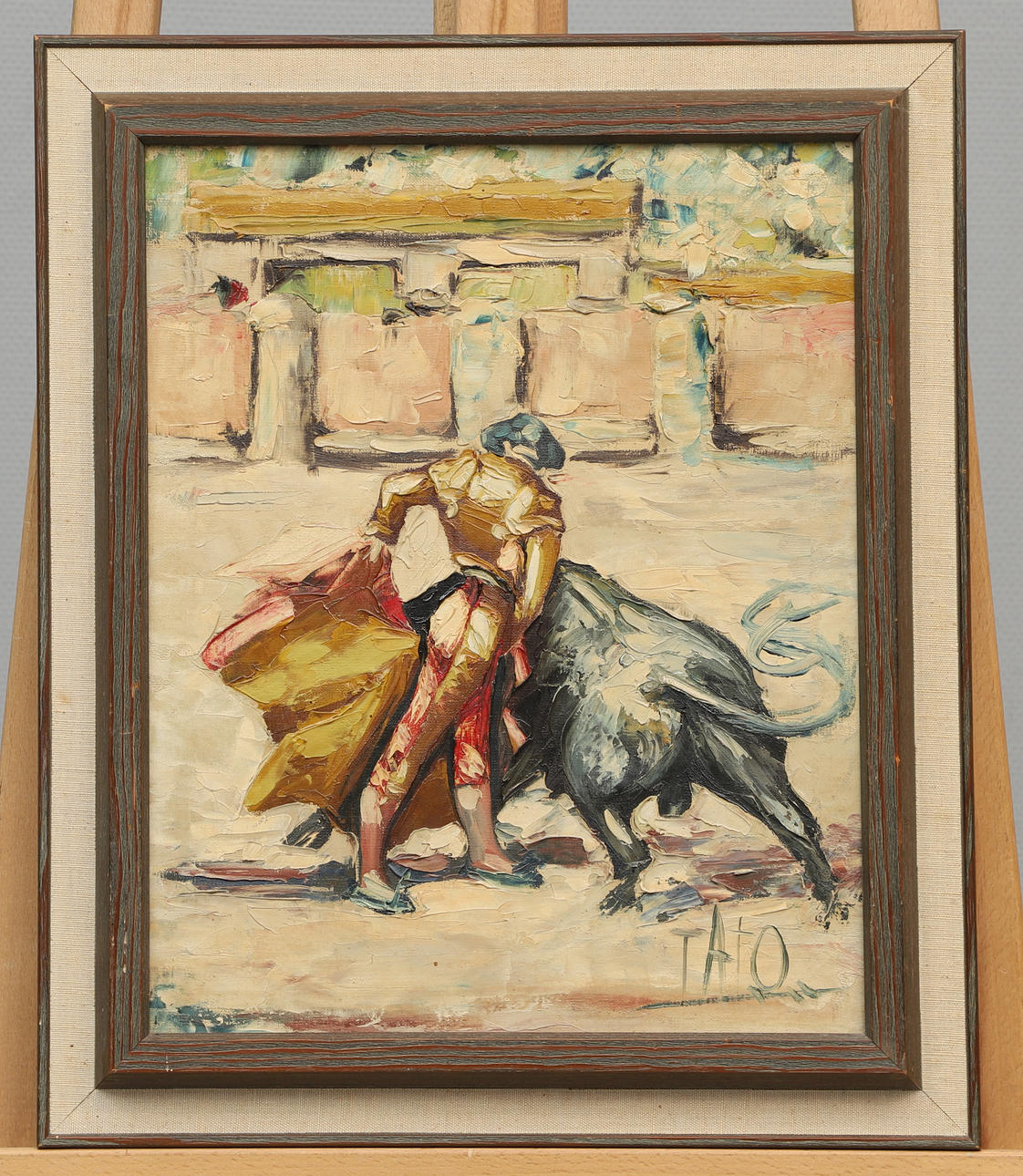 4472230. OIDENTIFIERAD KONSTNÄR. Oil on canvas, bullfighting, signed.