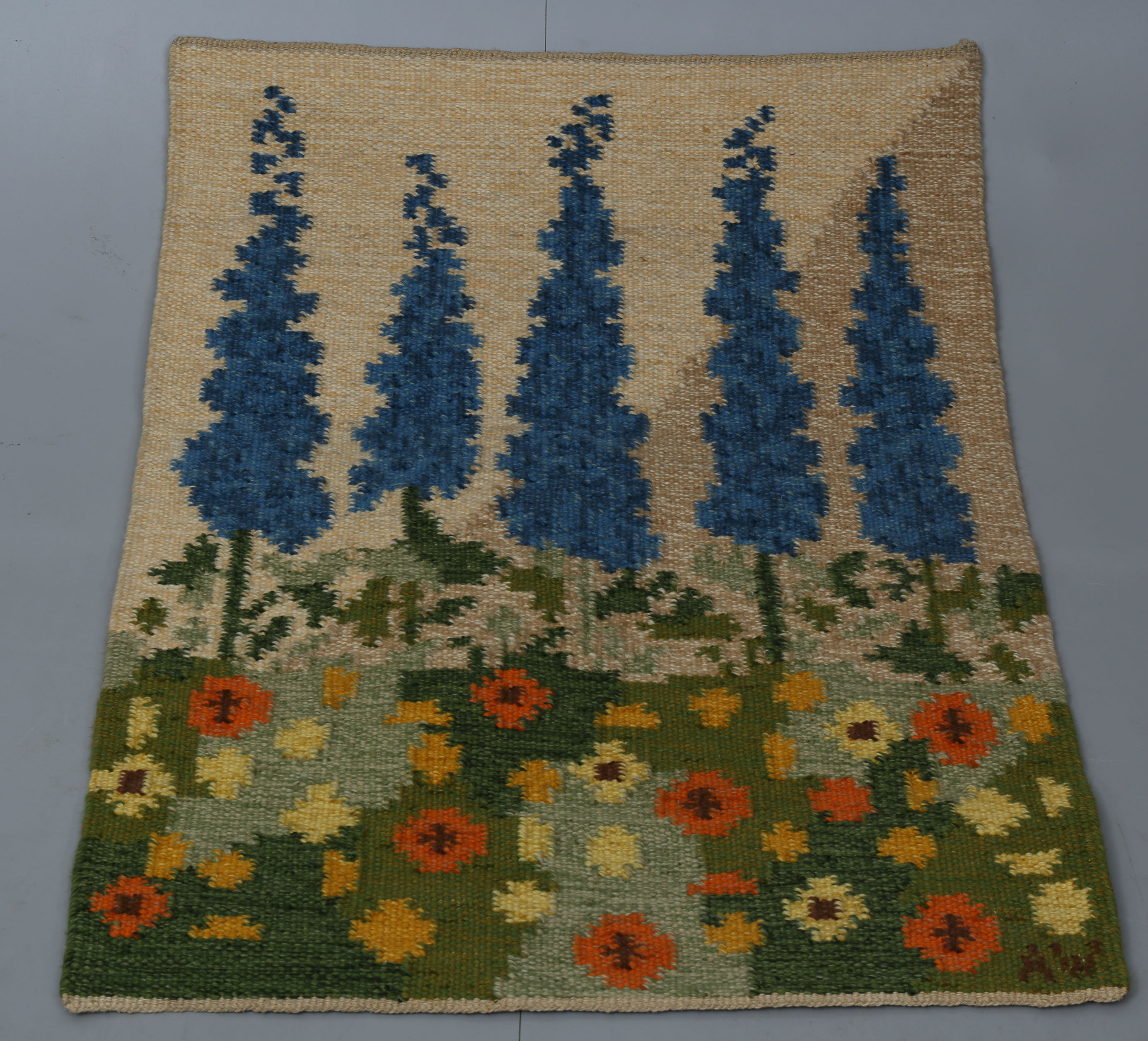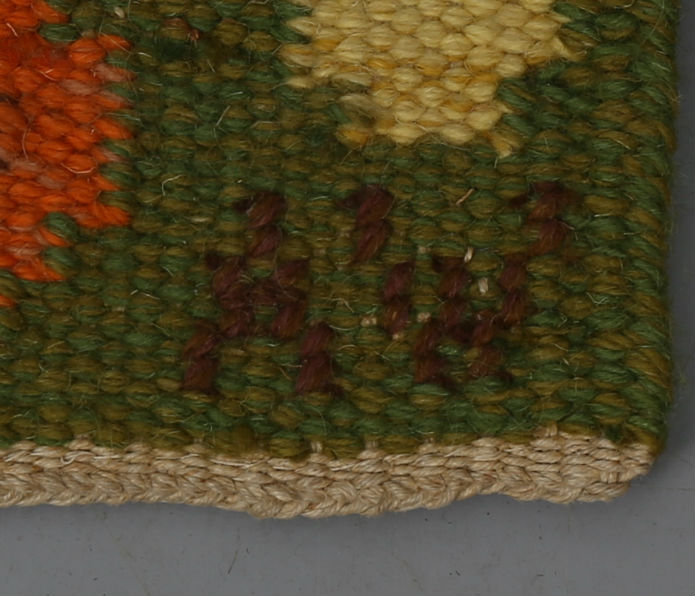447225. ALICE WALLEBÄCK. Woven, rolled sheet, "Augusti", signed AW.