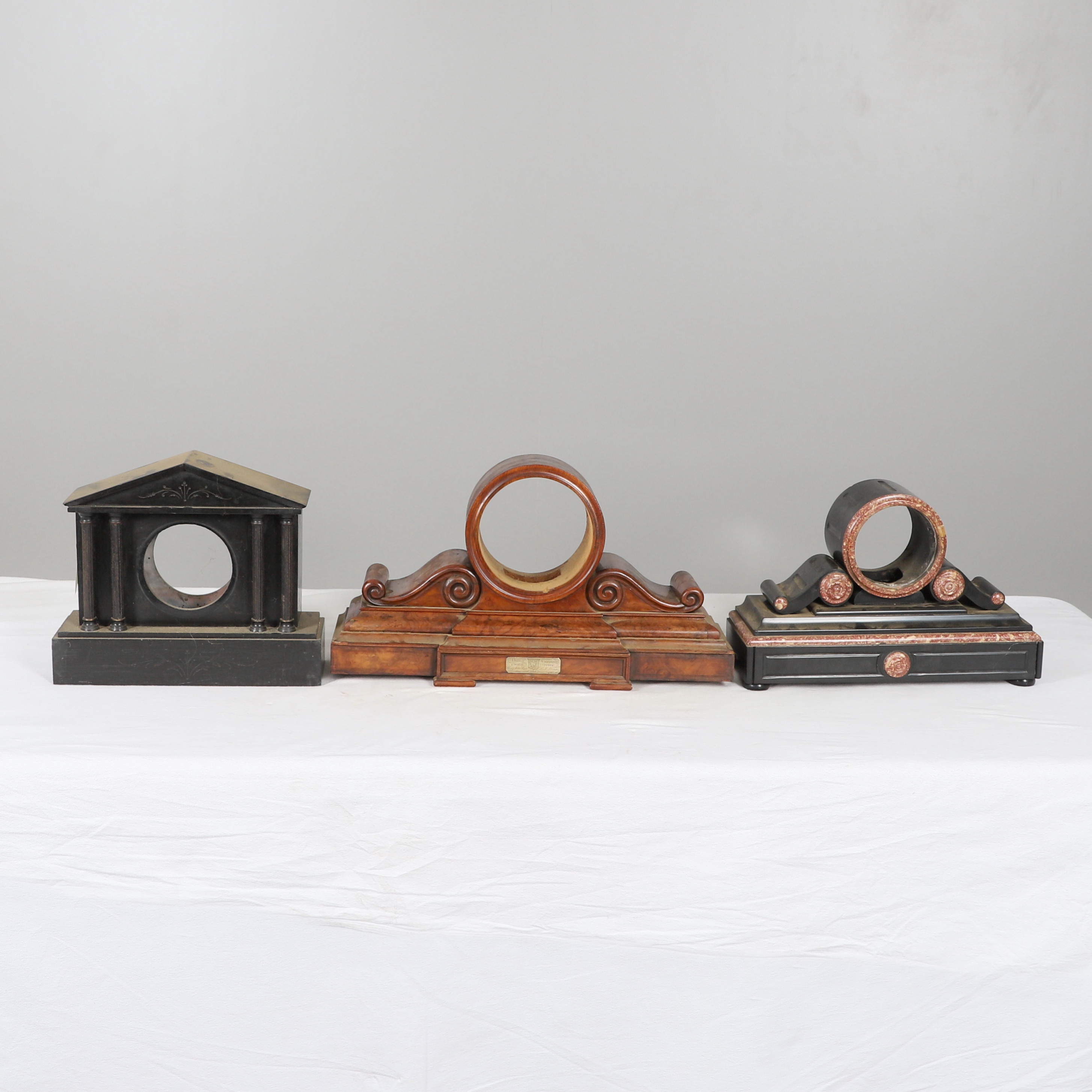 4472840. THREE 19TH CENTURY MANTEL CLOCK CASES.