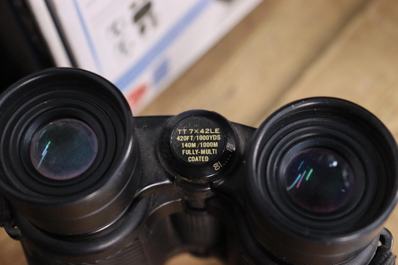 Tasco Titan TT 7x42le binoculars. SilverCrest Twintalker. Muck Boot boots with carrying pouch. EUROS 44-45, UK 10.