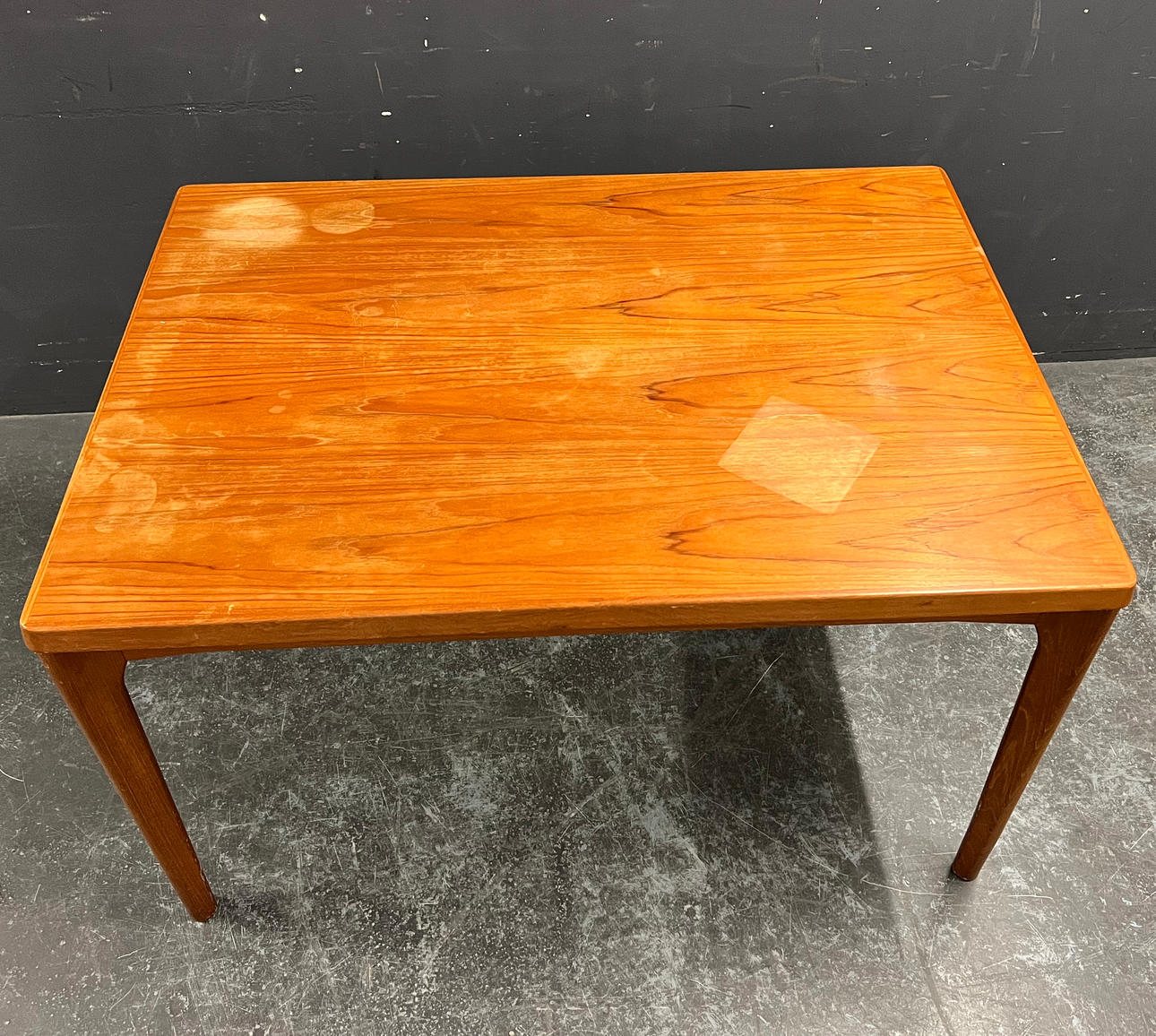 stains and scratches on the table top.