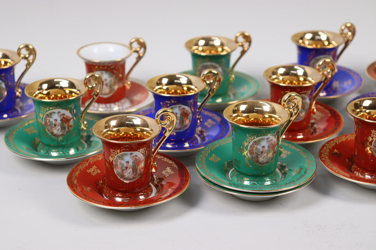 4473228. BREMER & SCHMIDT, Germany, mocca tableware with antique decor, 25 pieces.