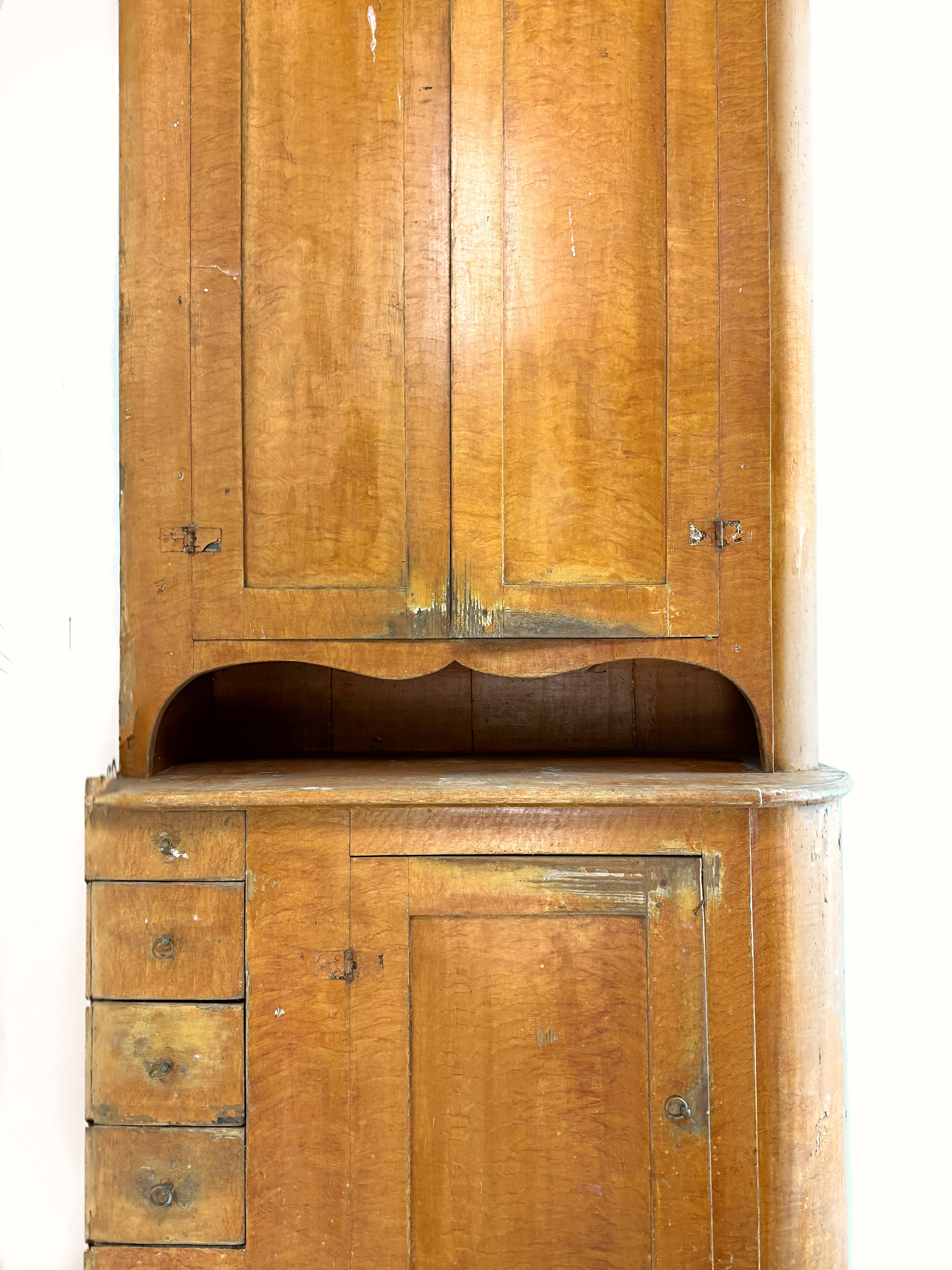4473231. LOCKER, built in place for placement in corners, solid wood cabinet, drawers and cabinets.Early 20th century.