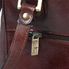 Red-brown leather, embossed logo and metal trays with markings. Interior fully lined in beige textile with printed logo, several compartments and zipper. Height approx. 26 cm, width approx. 29 cm.
