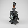Decor of antique figurines. Height of the candlesticks 42 cm, the table clock 48 cm.