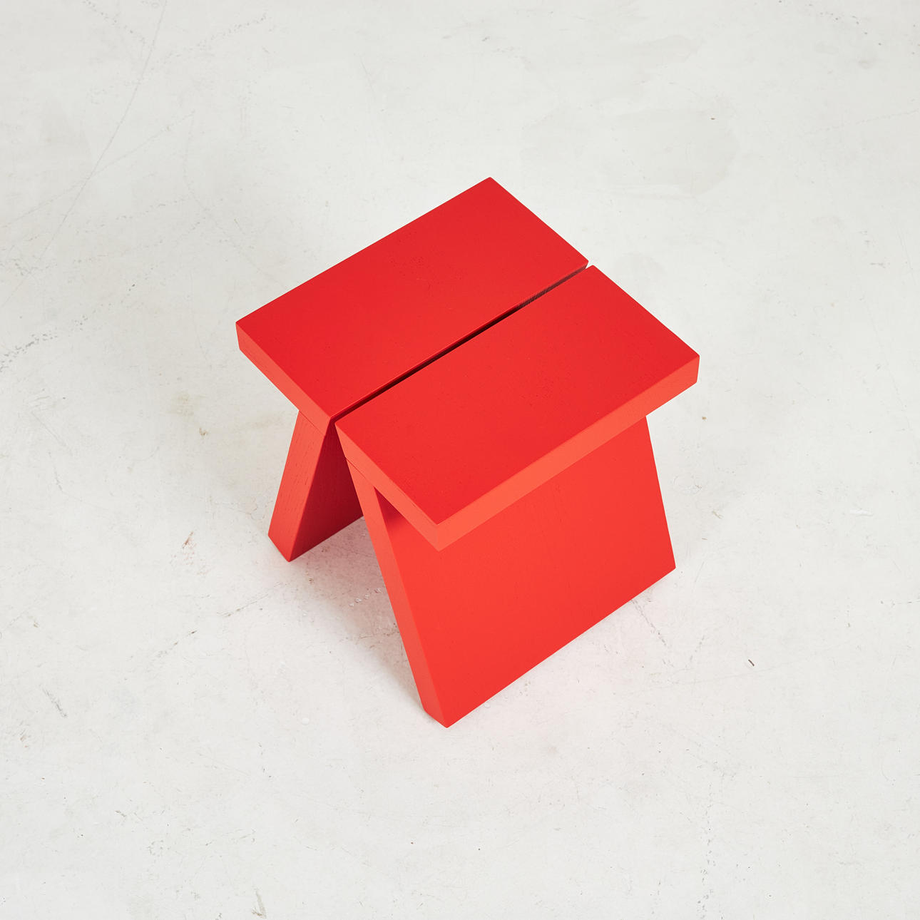 PALLET/SIDE TABLE, “Supersolid Object 1", red lacquered oak, Fogia.