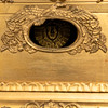 Bronzed decoration of eagles, aged glass, among others.