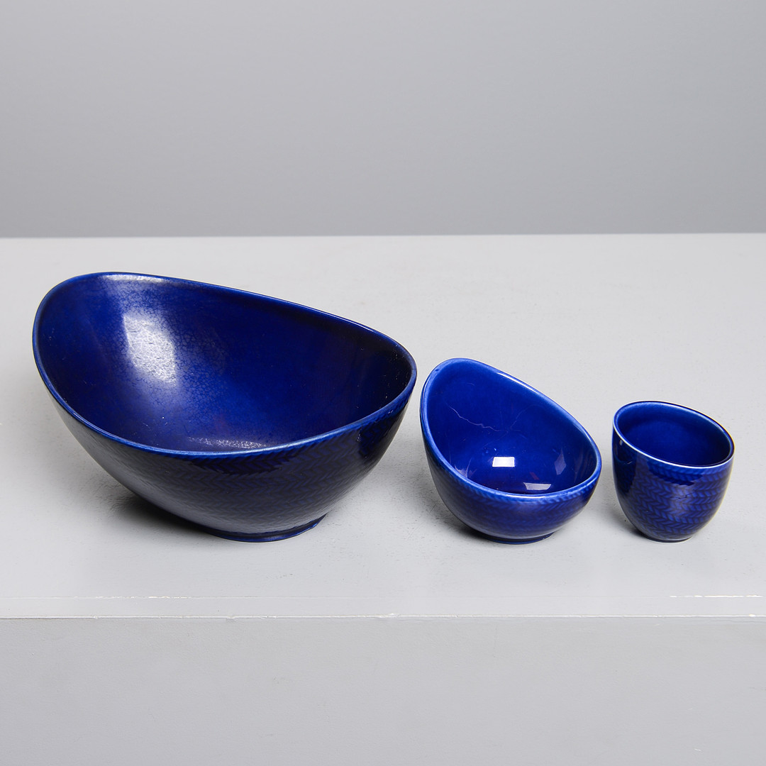 4474108. HERTHA BENGTSON. “Blå Eld”, plates & serving bowls, 4 pcs, Rörstrand.