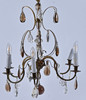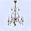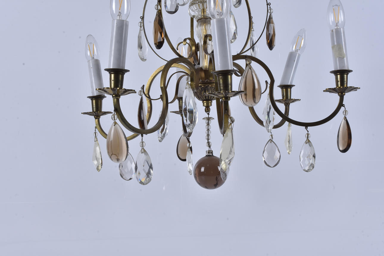 4474501. CEILING CHANDELIER, brass with partly coloured prisms.