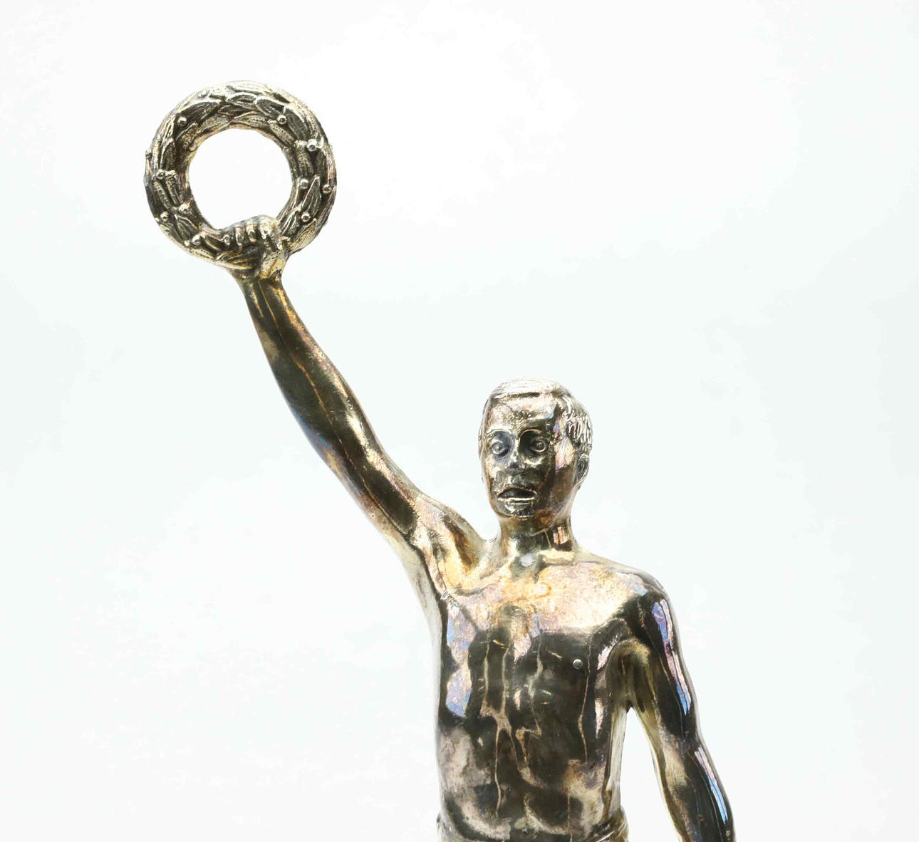 Silver-plated metal. Wooden plinth. Height 25 cm.