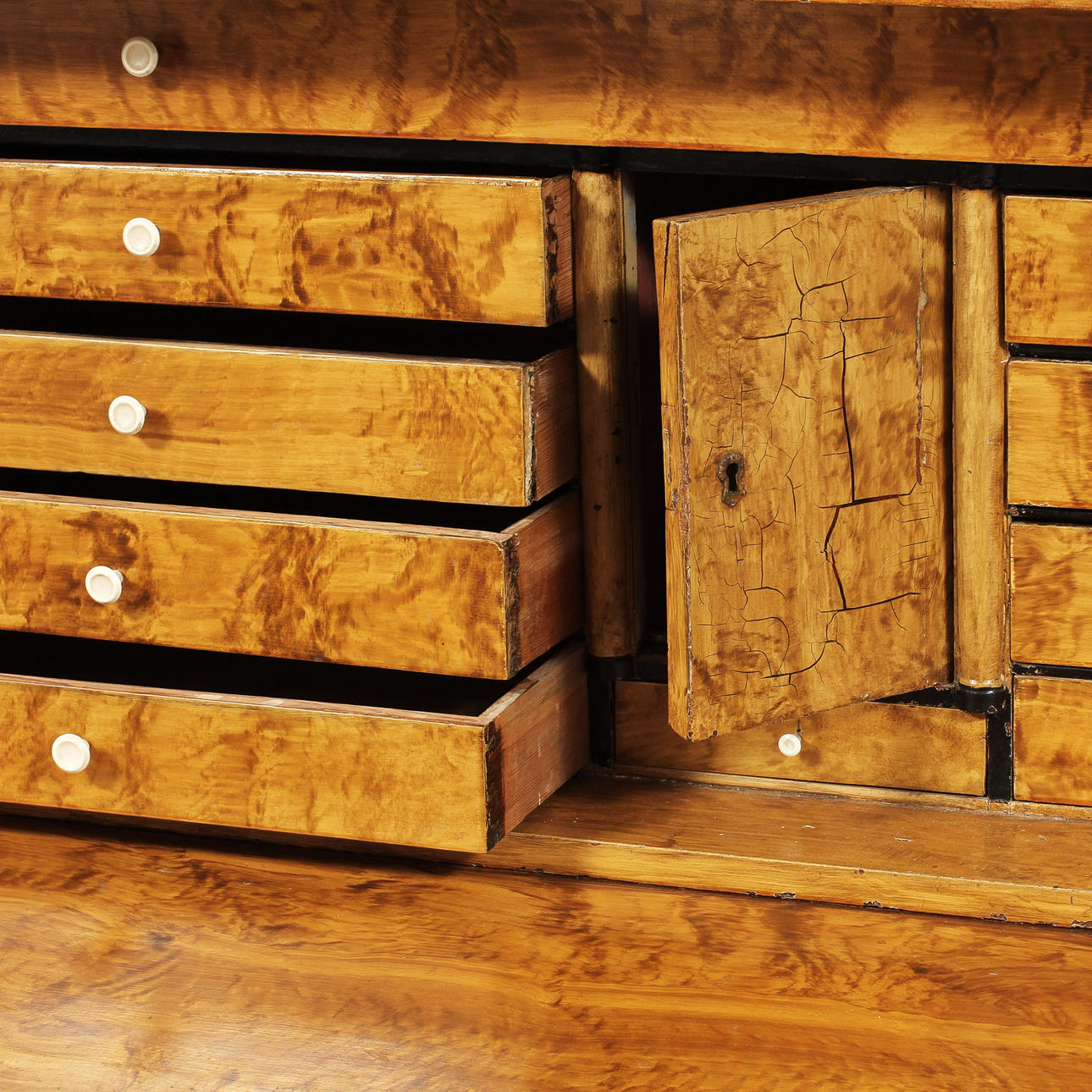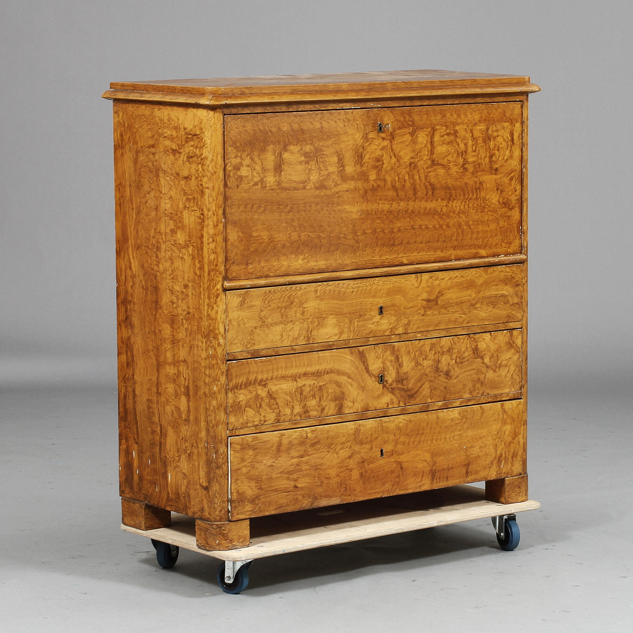 Imitation painting. 3 drawers and writing furniture behind the flap. Length 123, width 56, height 132 cm.