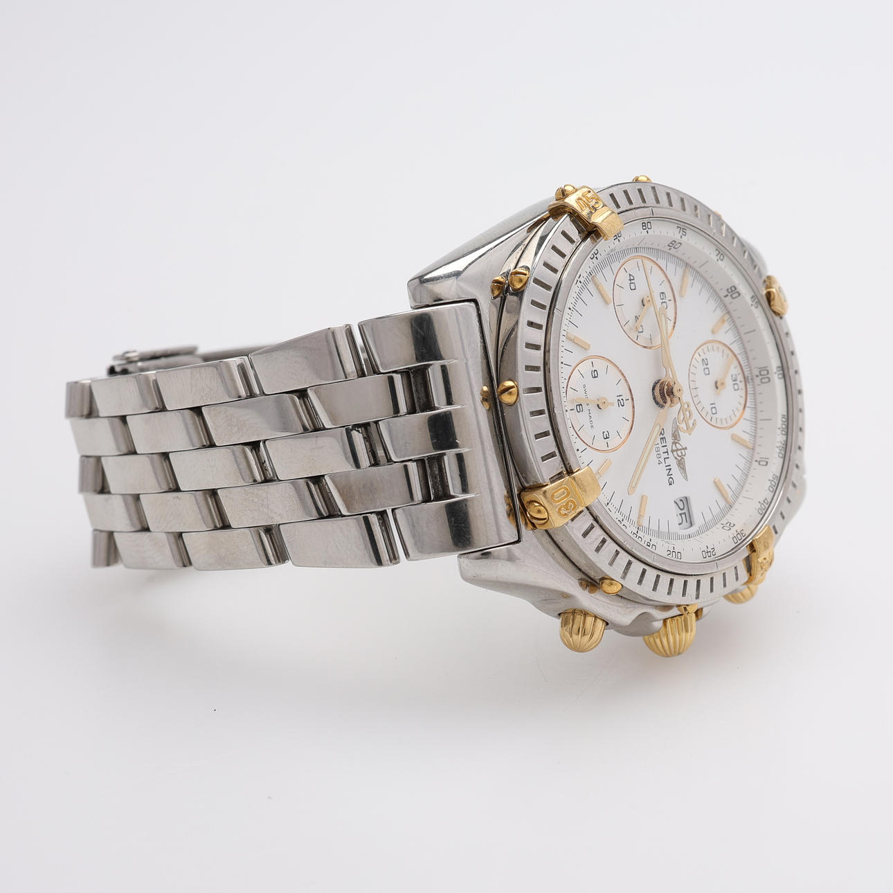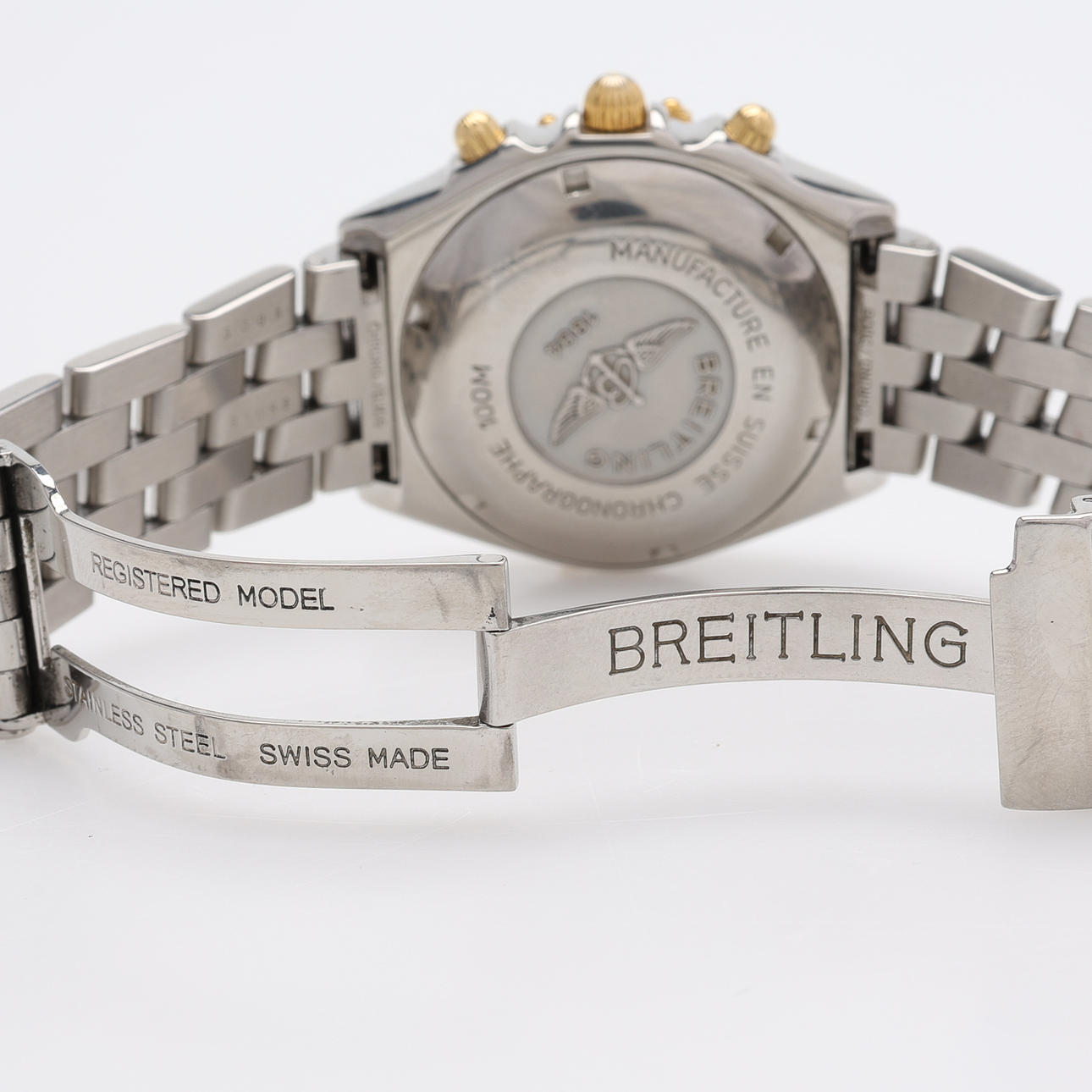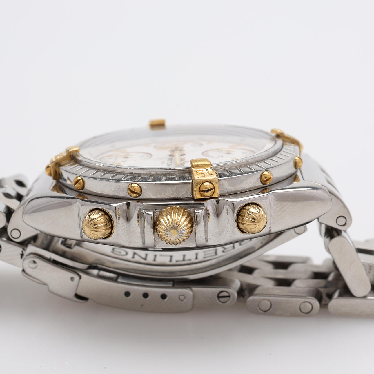 Case diameter 39 mm. Sapphire glass. Date. Chronograph with minute & hour counter. Ref. B 13050. Serial number 131832. Pilot bracelet in original, ref. S1698/300A. 2 additional link parts included.