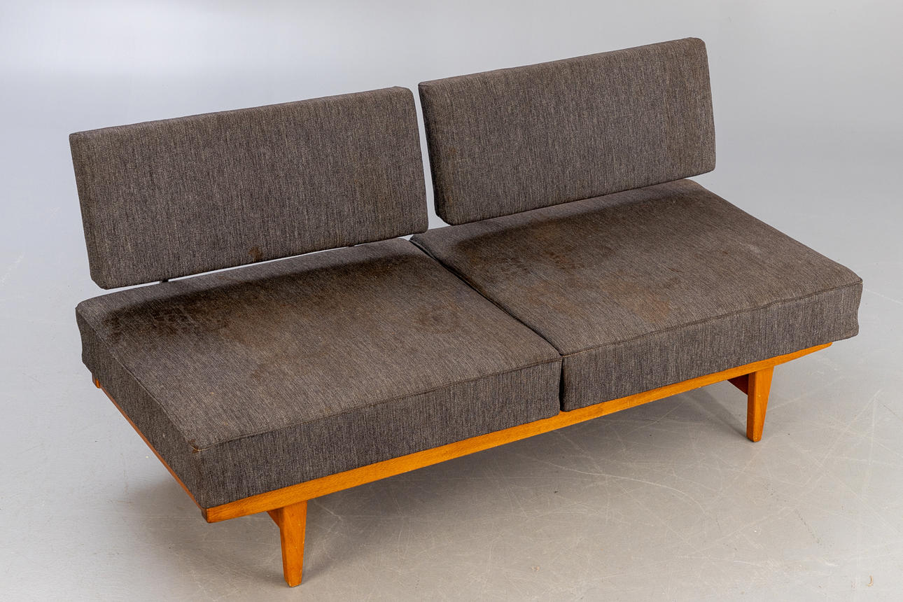 Sofa/Daybed 'Stella' by Knoll. Germany, 1950s. Design: 1950s. Timber construction Upholstery covered with gray fabric. The sofa can be converted into a daybed.