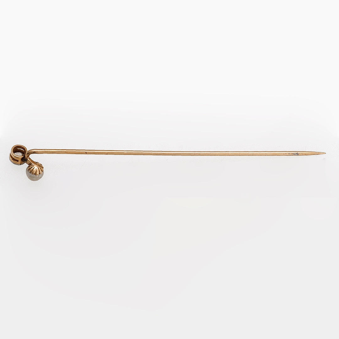 18K gold with platinum views, old brilliant cut diamond, approx. 0.15 cts., and cultured pearl of 4 mm diam. 7.2 cm. 1.4 gr.
