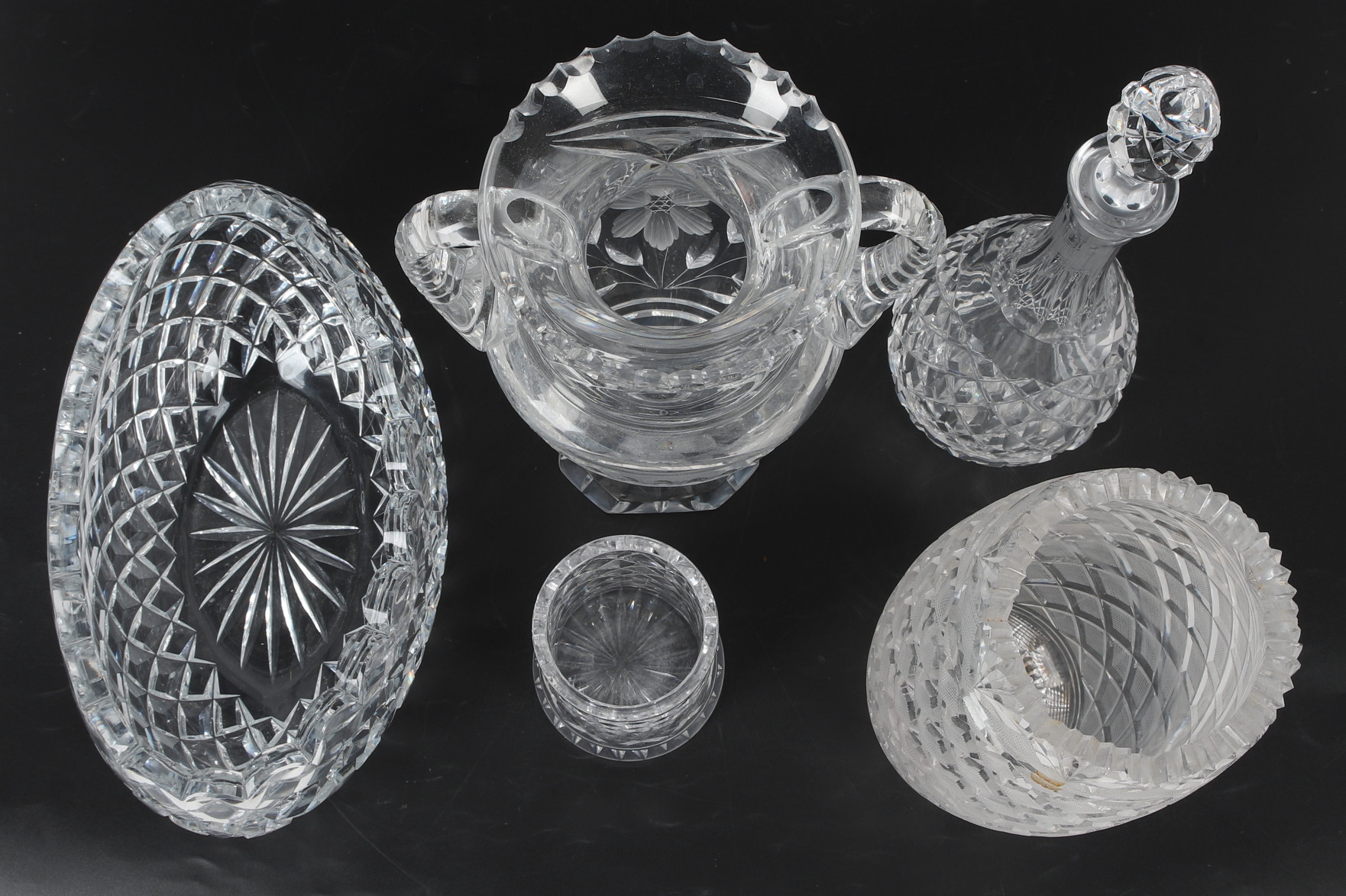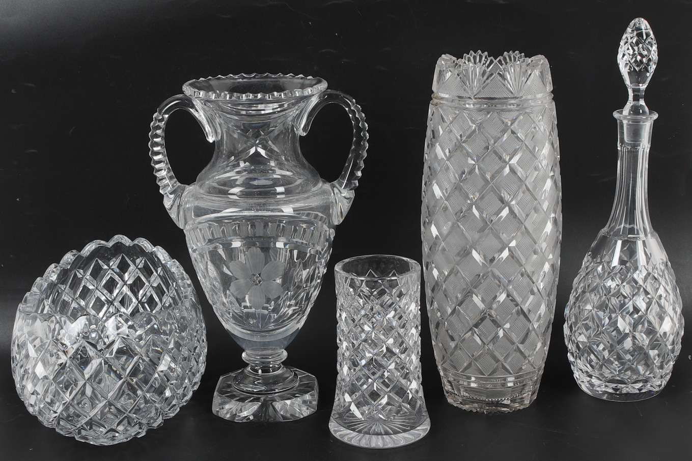 4476907. A set of 5 glass objects, pressed glass, 20th century.