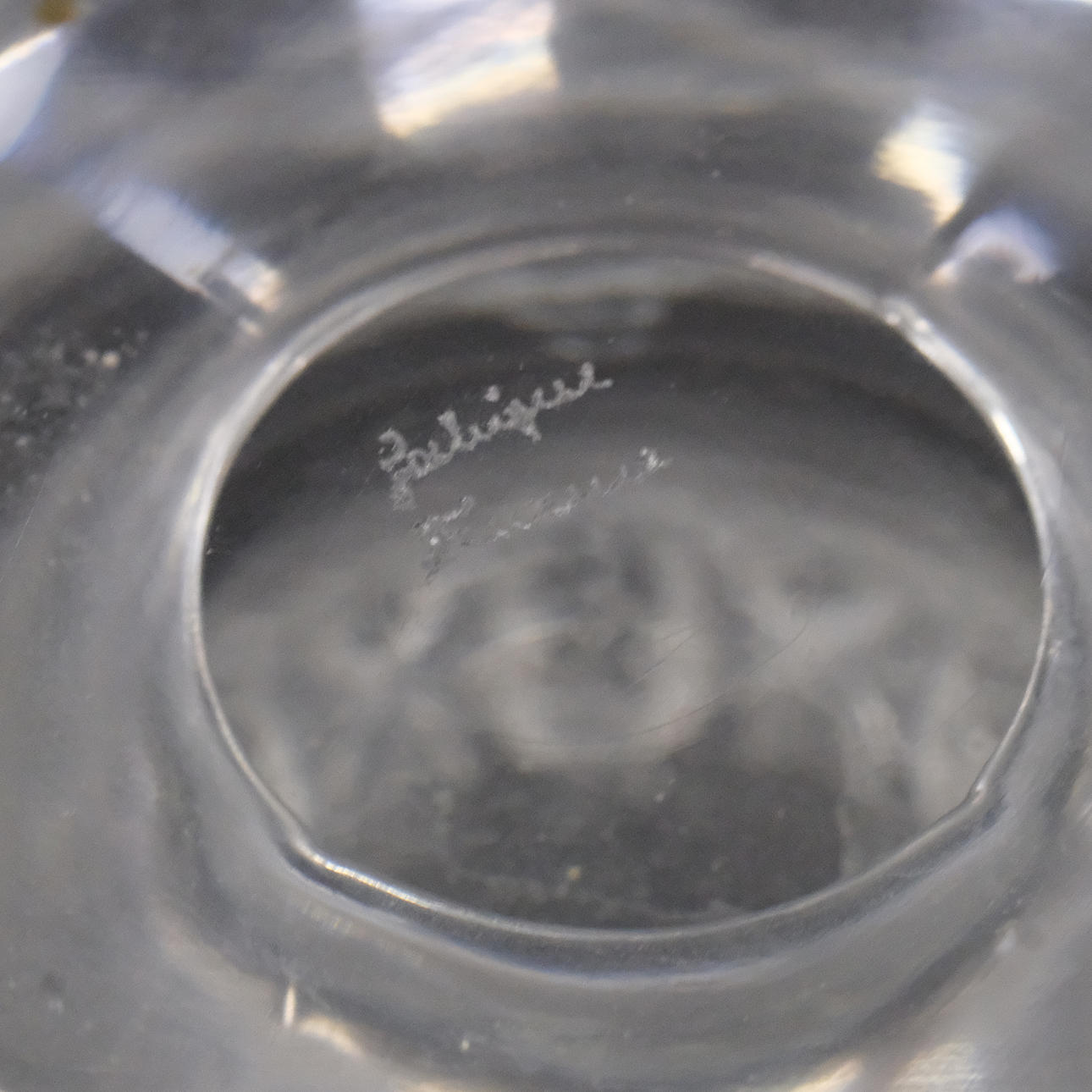 Tagged Lalique France and label-marked. Height 12cm, diameter 11,5cm.