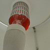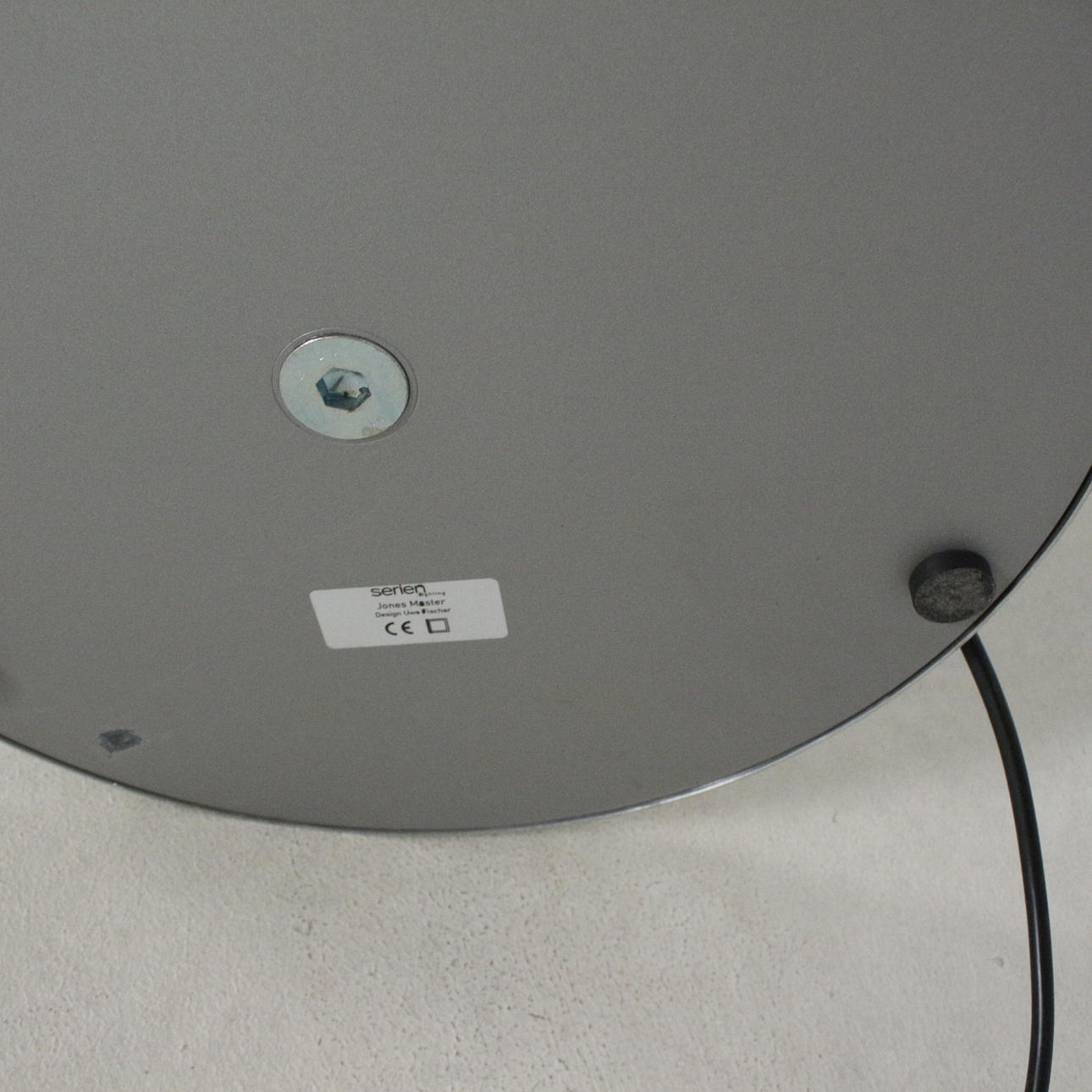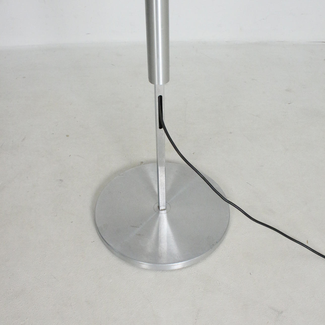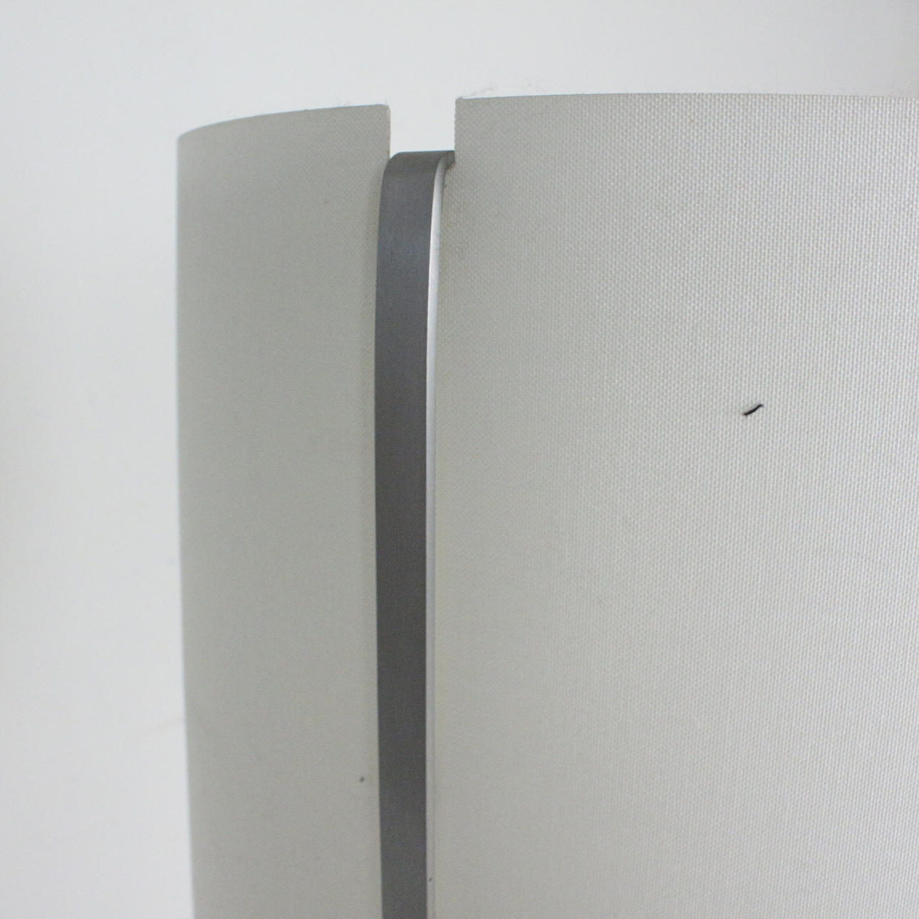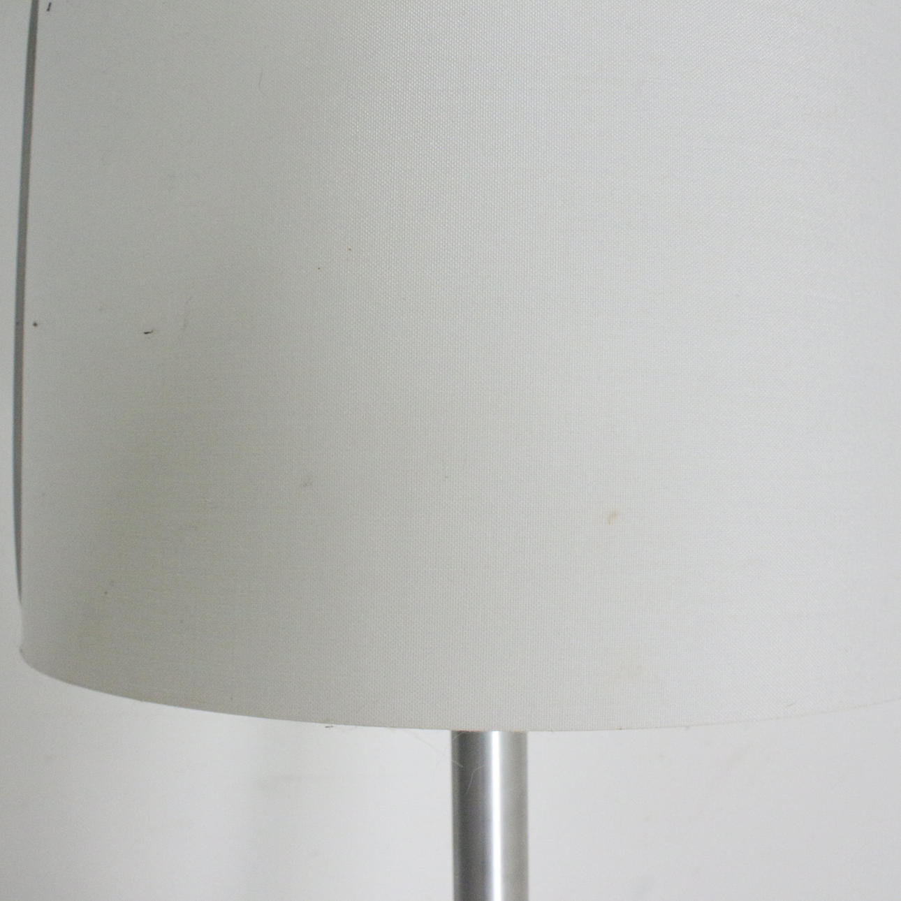 Hard glass fabric, textile laminated white (shade); brushed and lacquered aluminum (round tube and base)