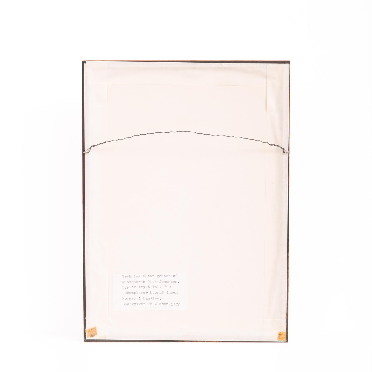 “Printing after gouach by the artist Gitz-Johansen. A total of 700 copies have been printed, none of which are available for sale. Bookprinter Th.Olesen, 1970.”