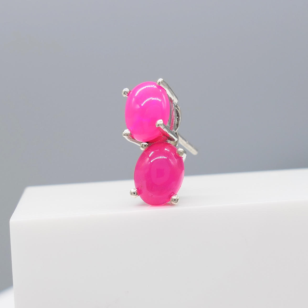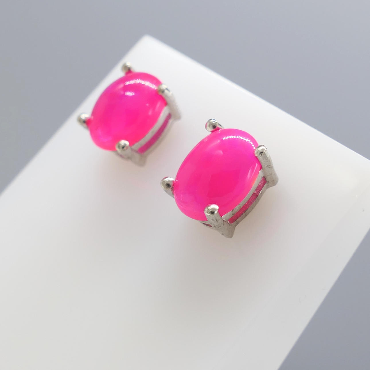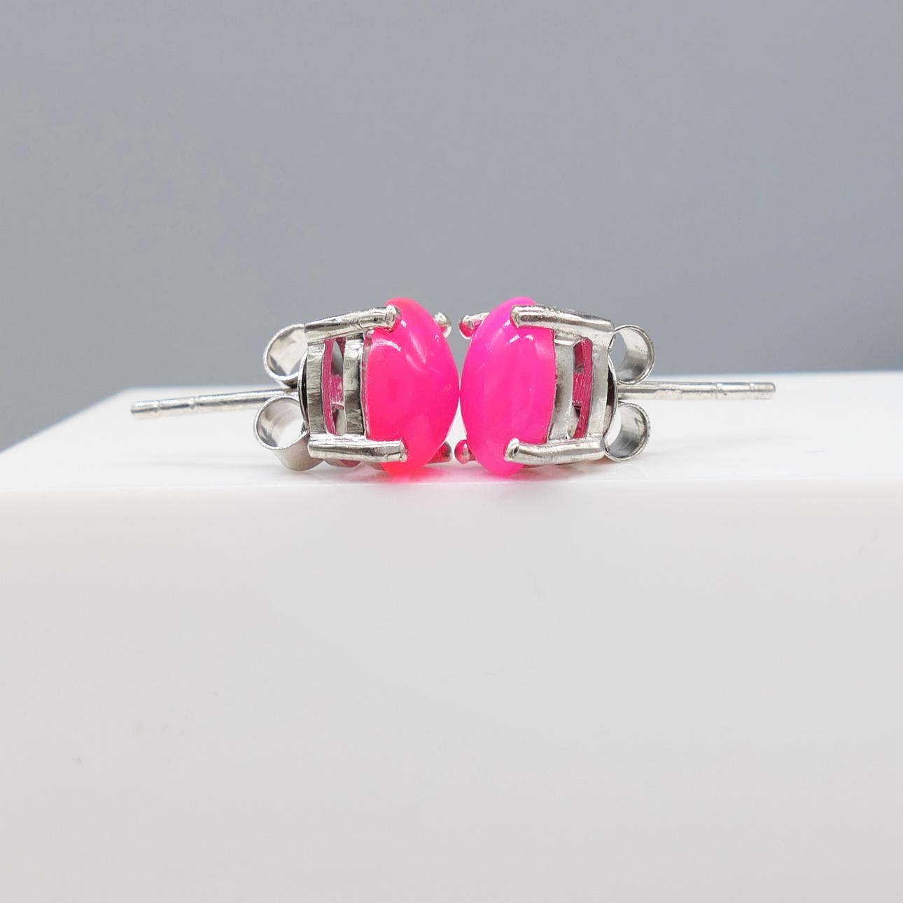 Pink opal gemstones: natural; oval cabochon cut; 1.20ct total approx; 8 x 6mm each; neon pink tone