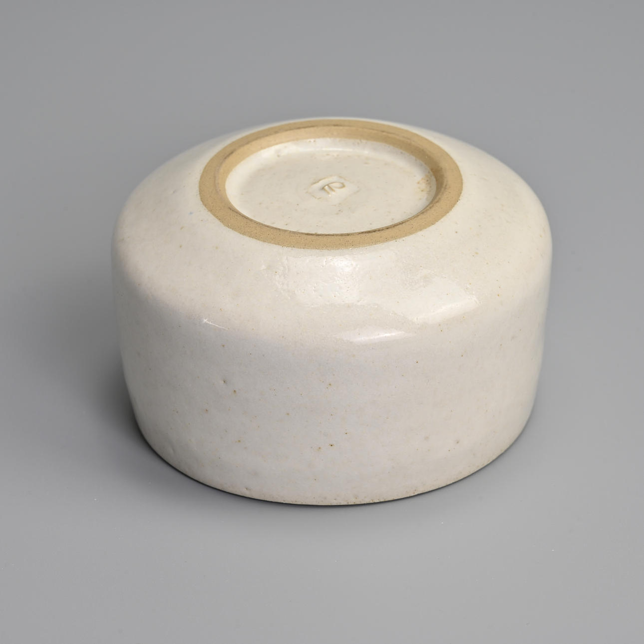 Circa 1960, impressed LR seal marks, glazed in a white tin glaze, with manganese feathered rims. (3)