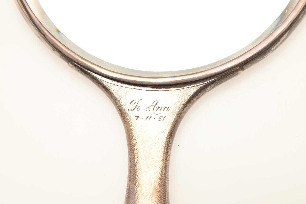4481646. A CHINESE SILVER VANITY MIRROR.