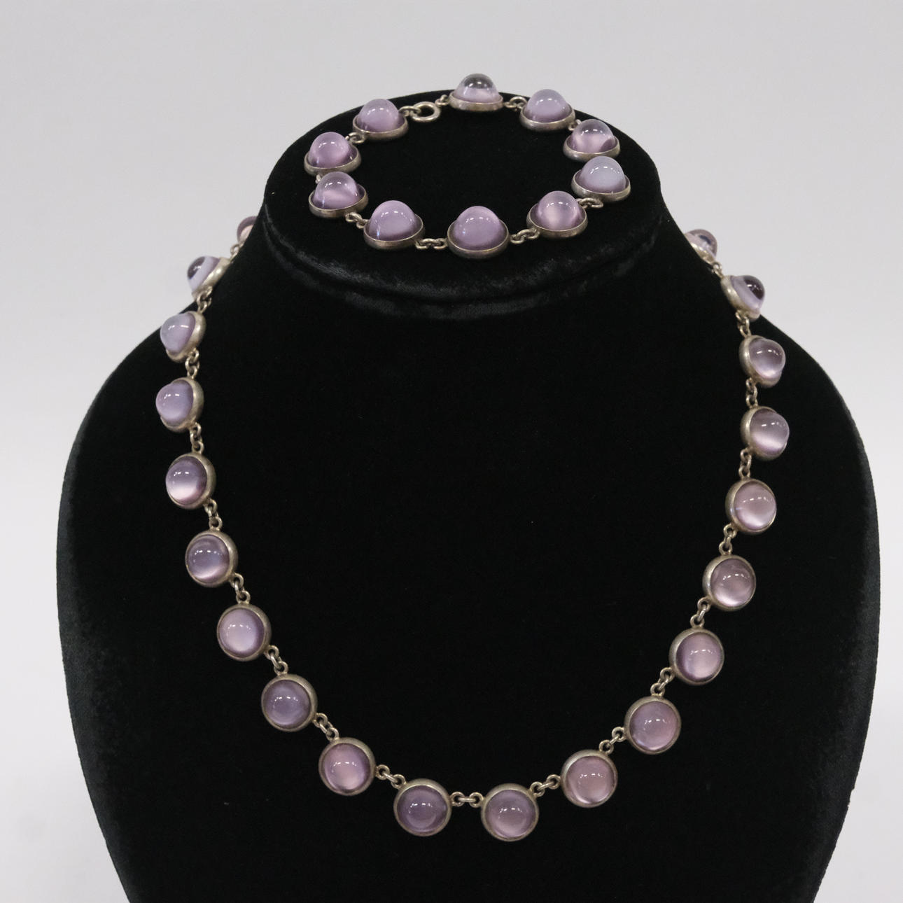 Necklace, length 42cm and bracelet, length 18cm, marked M&O, M.