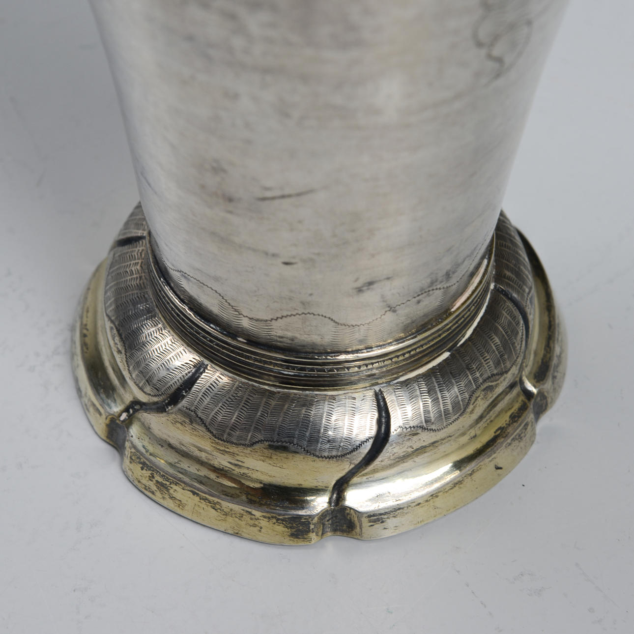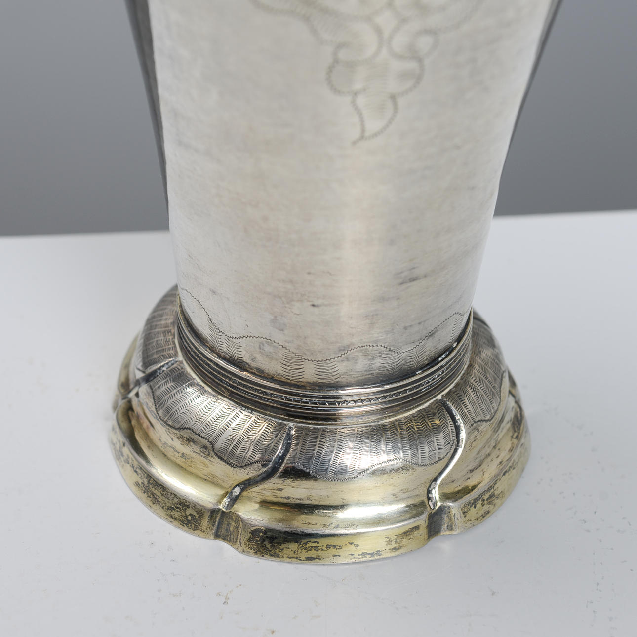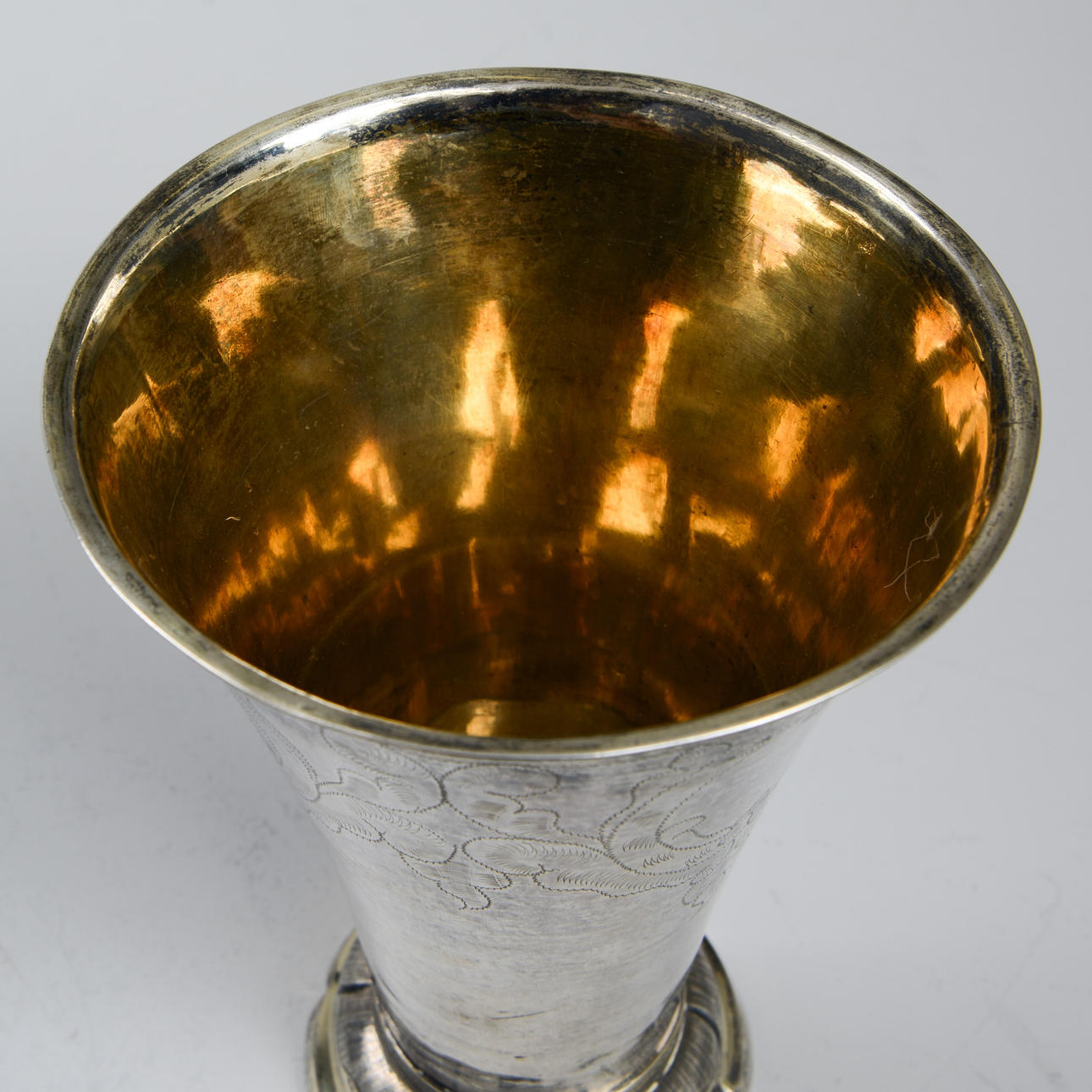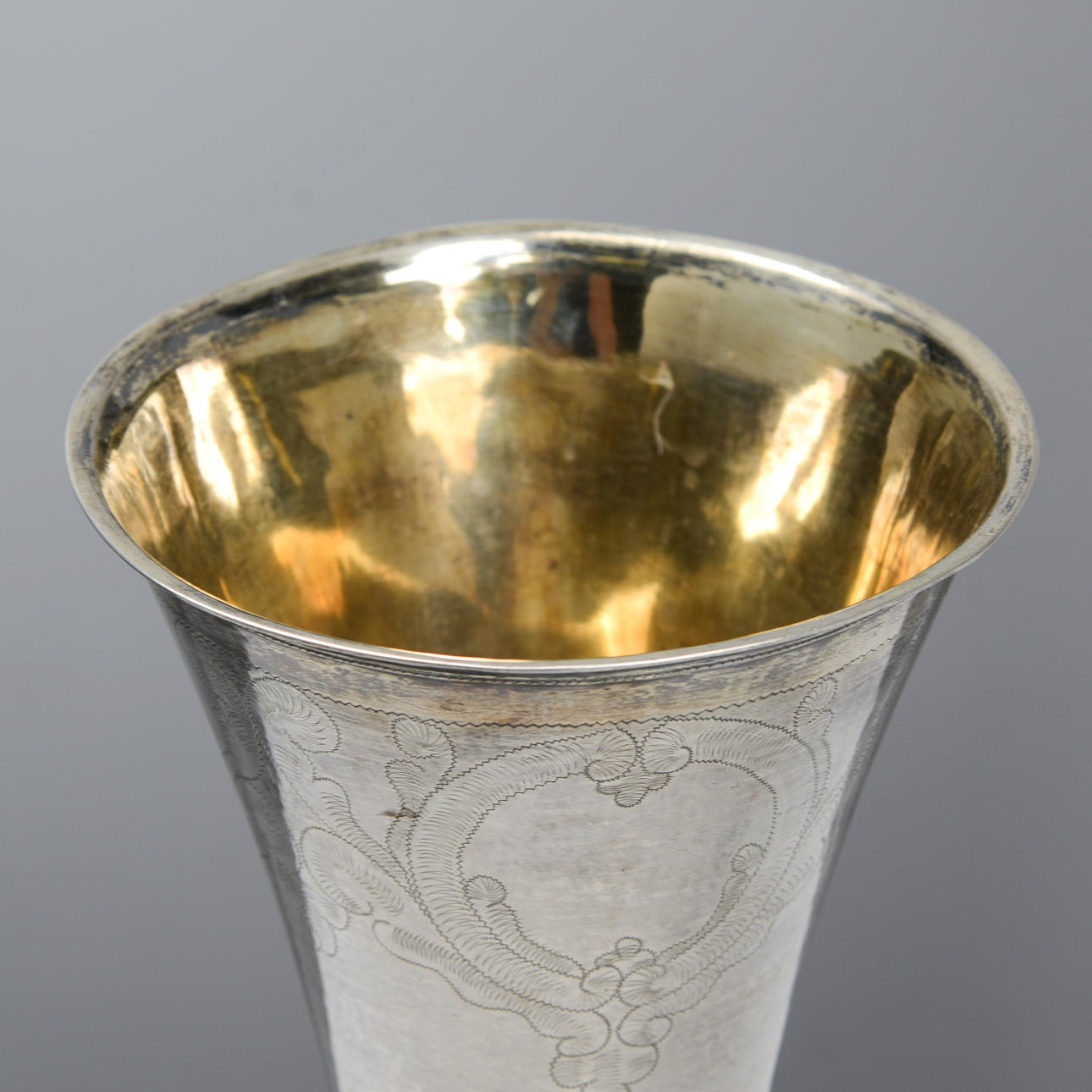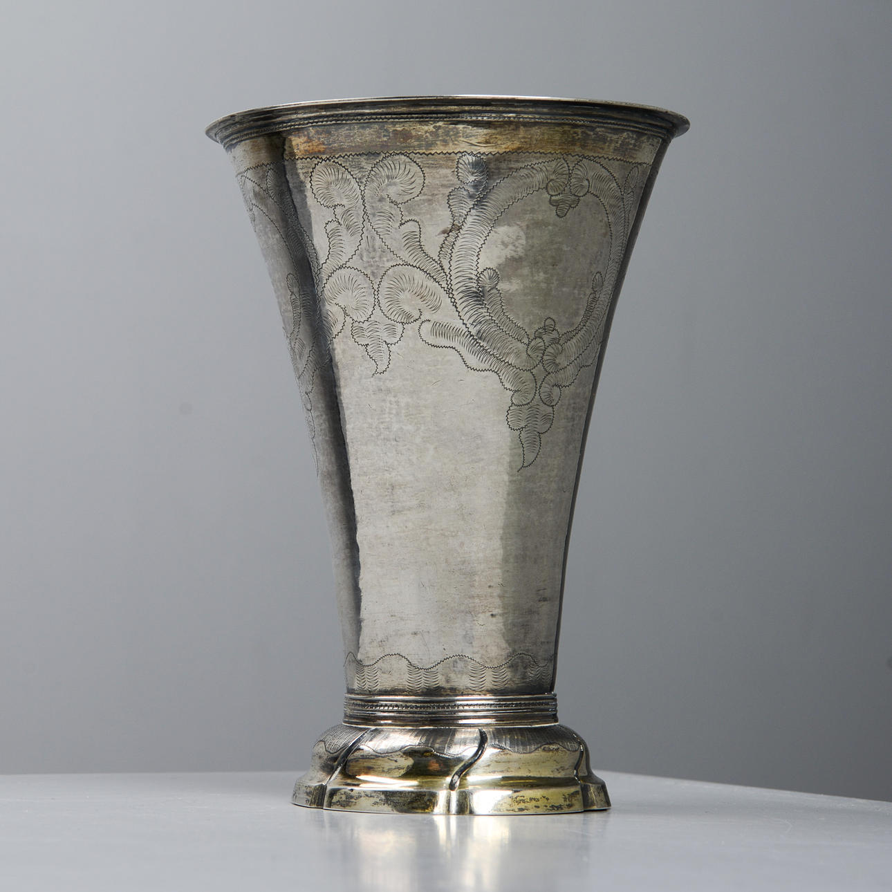 Carl Fredrik Seseman active 1781-1819. Silver, interior gilt. Conical shape, vertiginous decor in the form of medallions and leaf loops. Foot with turned knuckles. Diameter 10.5, height 22 cm. Weight 372 grams.