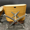 Polished aluminum frame, rotatable with plywood shells pigmented in white walnut. Removable cream-white leather upholstery