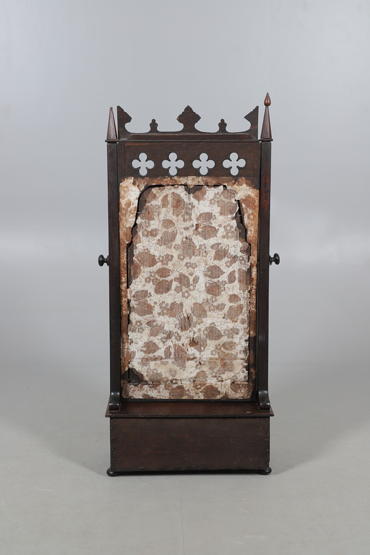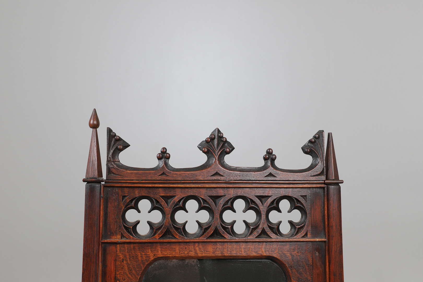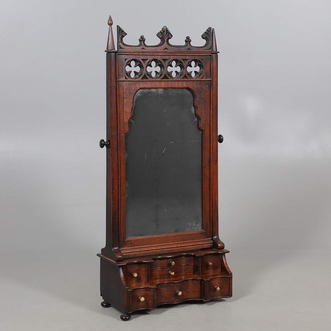4484201. AN OAK GOTHIC STYLE DRESSING TABLE MIRROR.