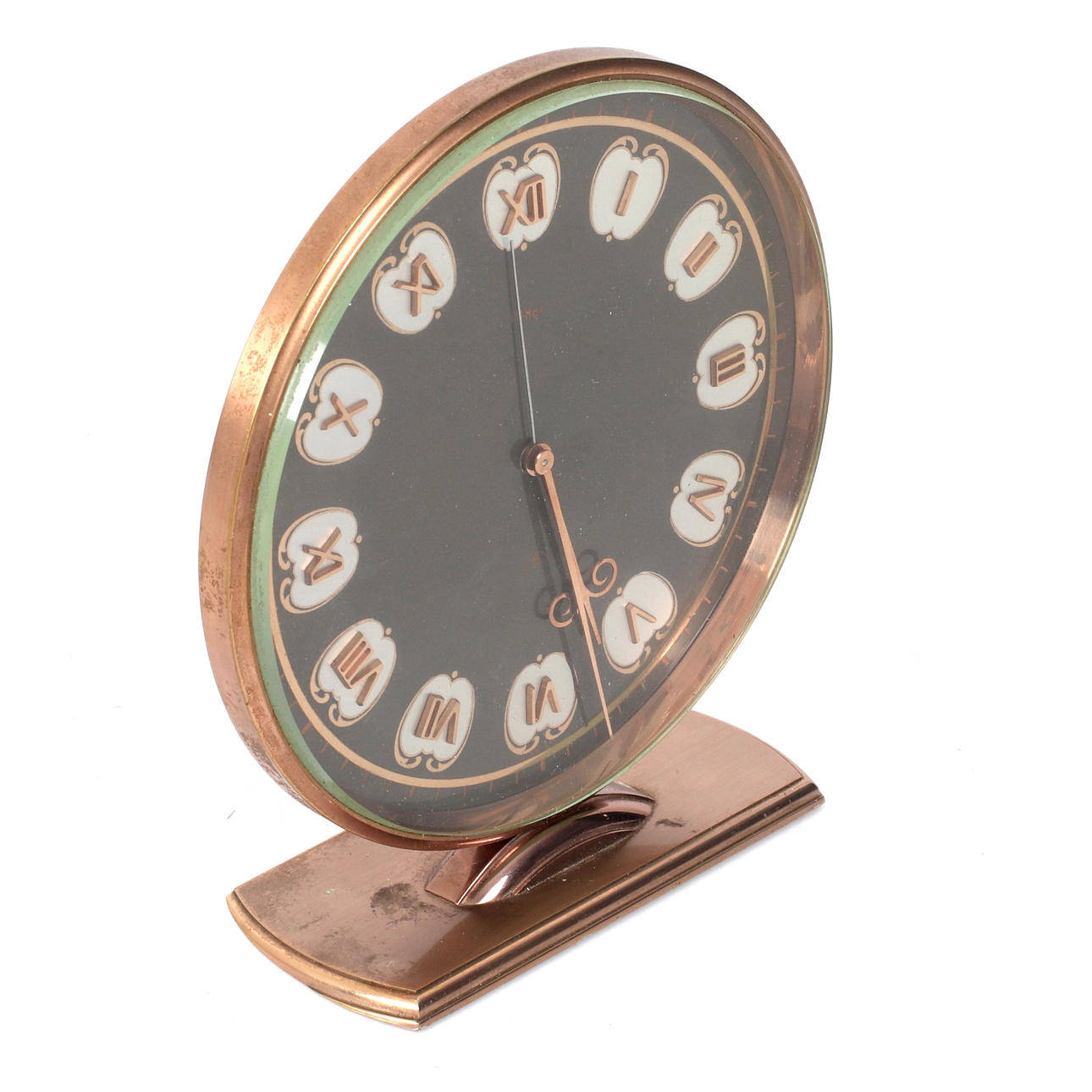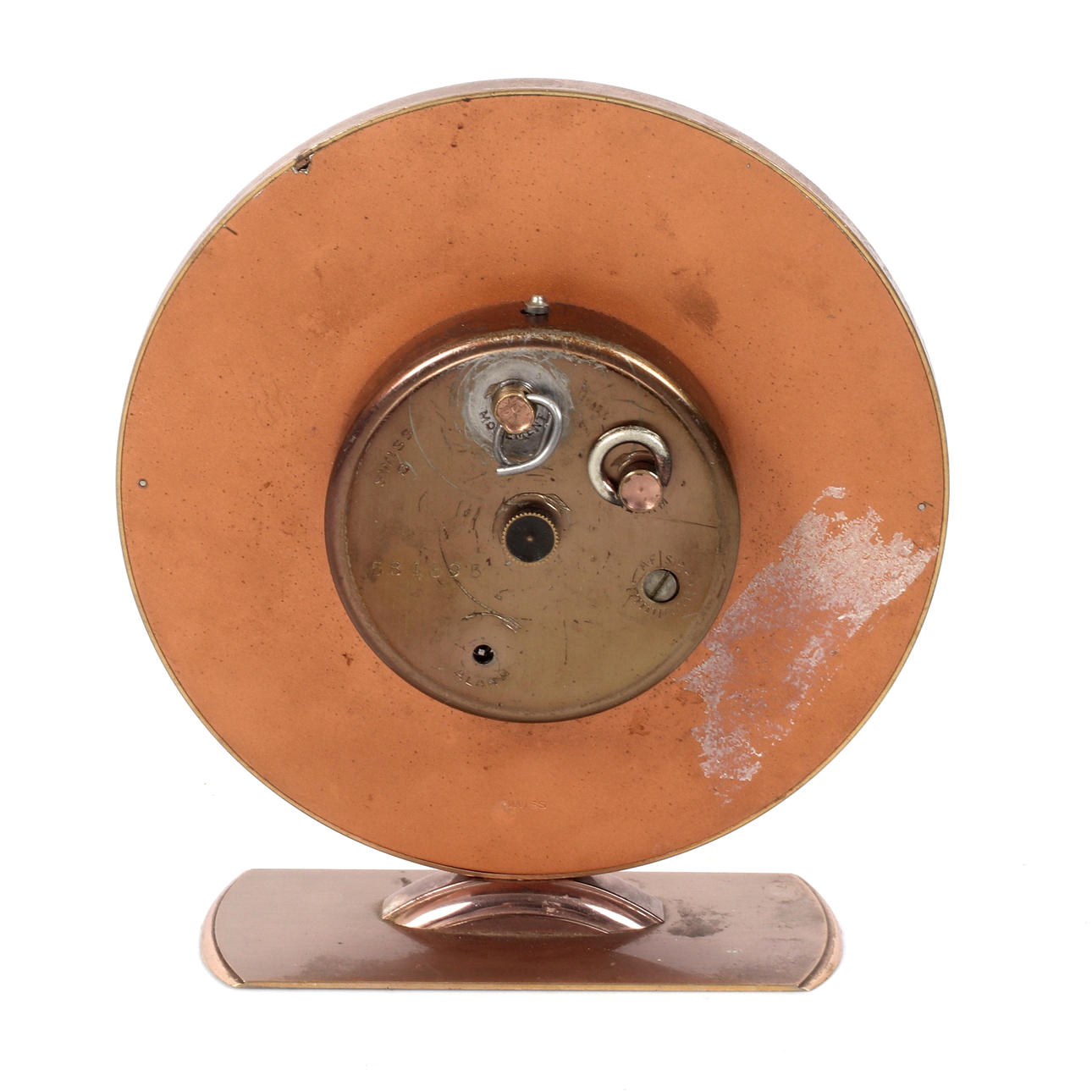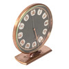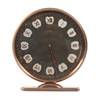 Table clock with manual assignment. Diameter 12.5 cm, height 13 cm. Works when cataloging - no warranty is given on functionality.