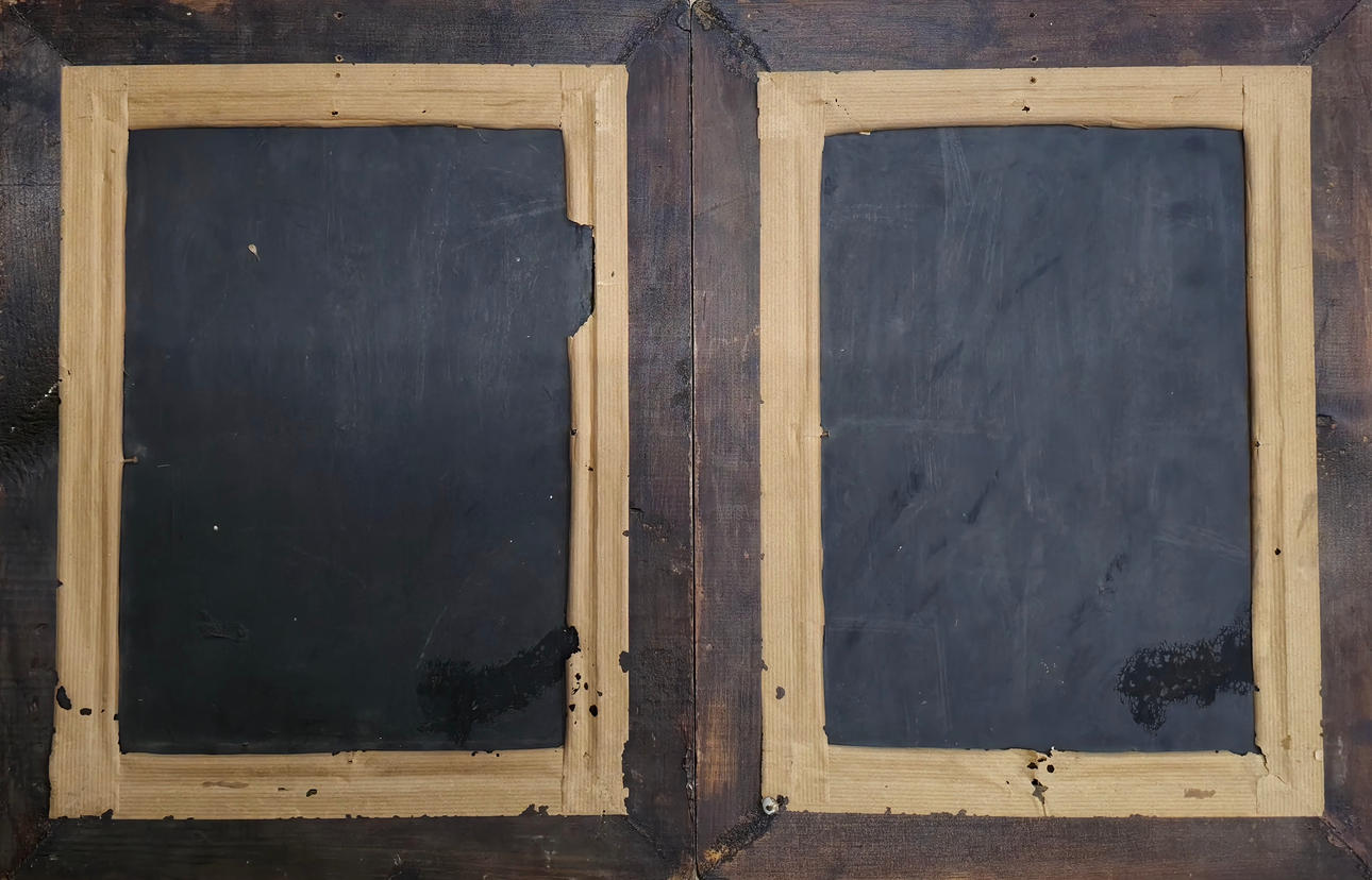 4485006. TWO MEDIEVAL PORTRAITS ON TABLETS. FRAMED. SIGNED LAPORTA.