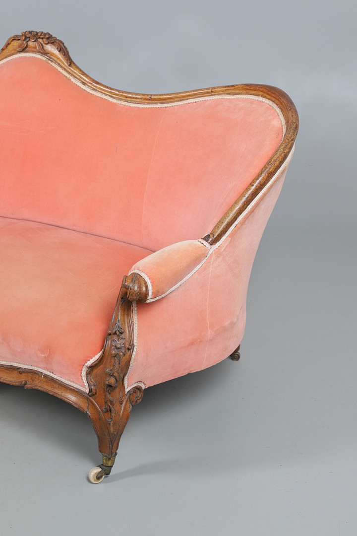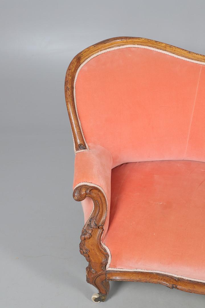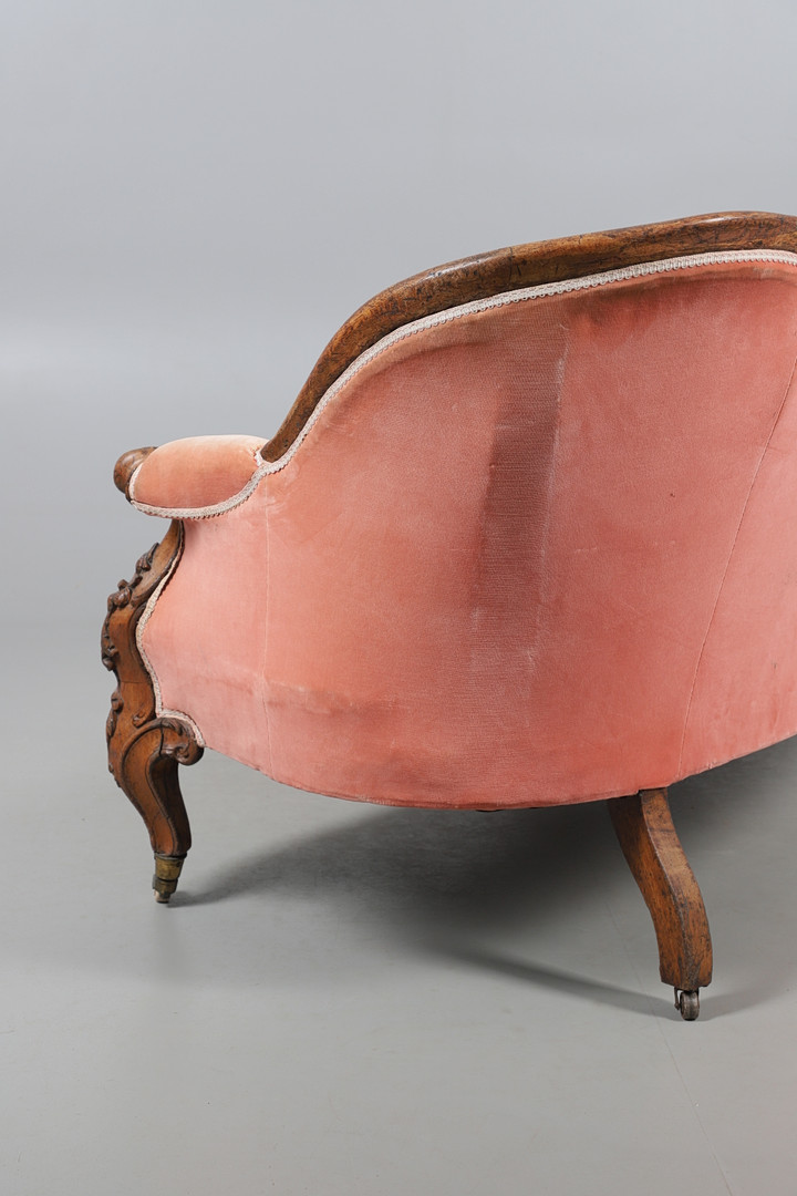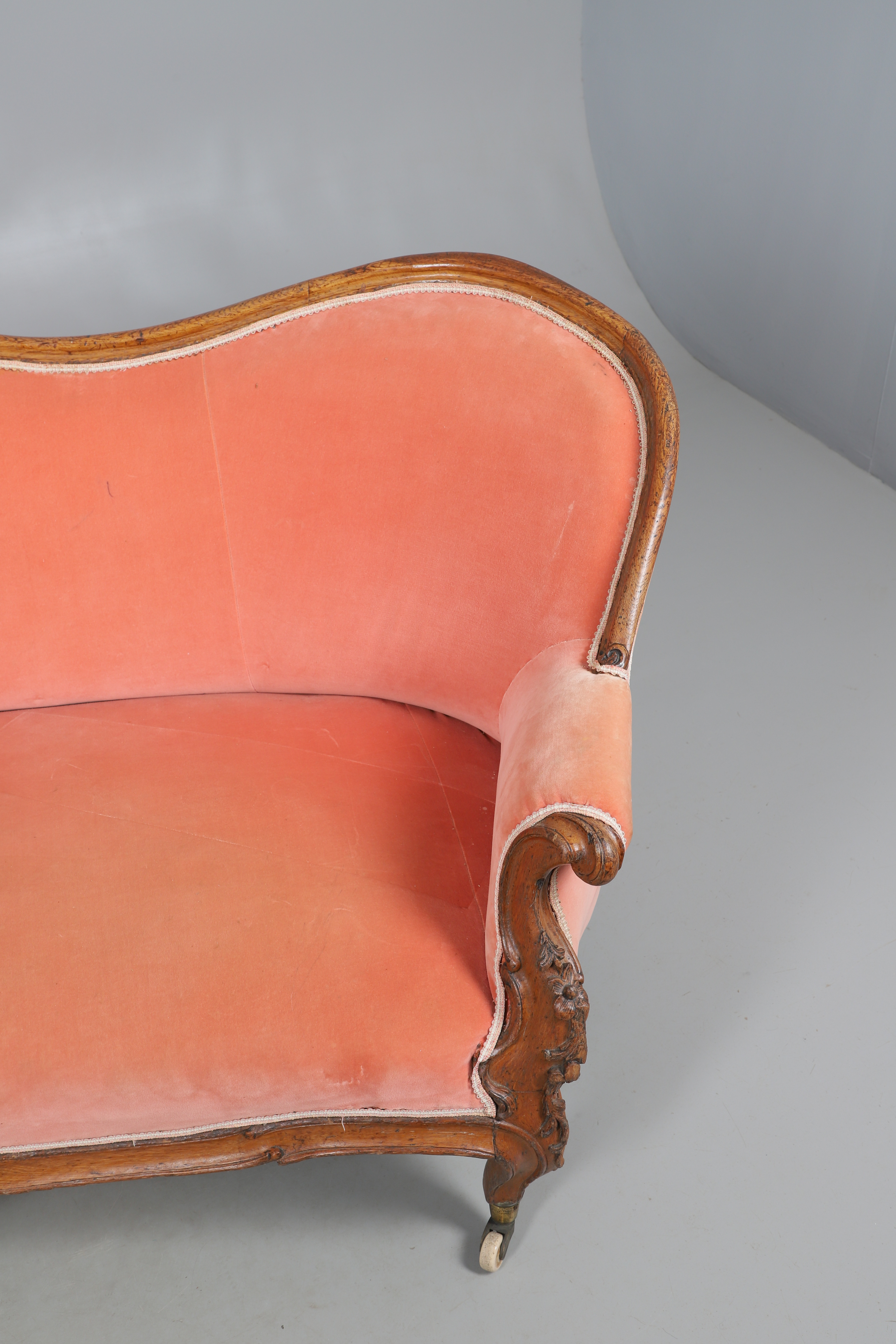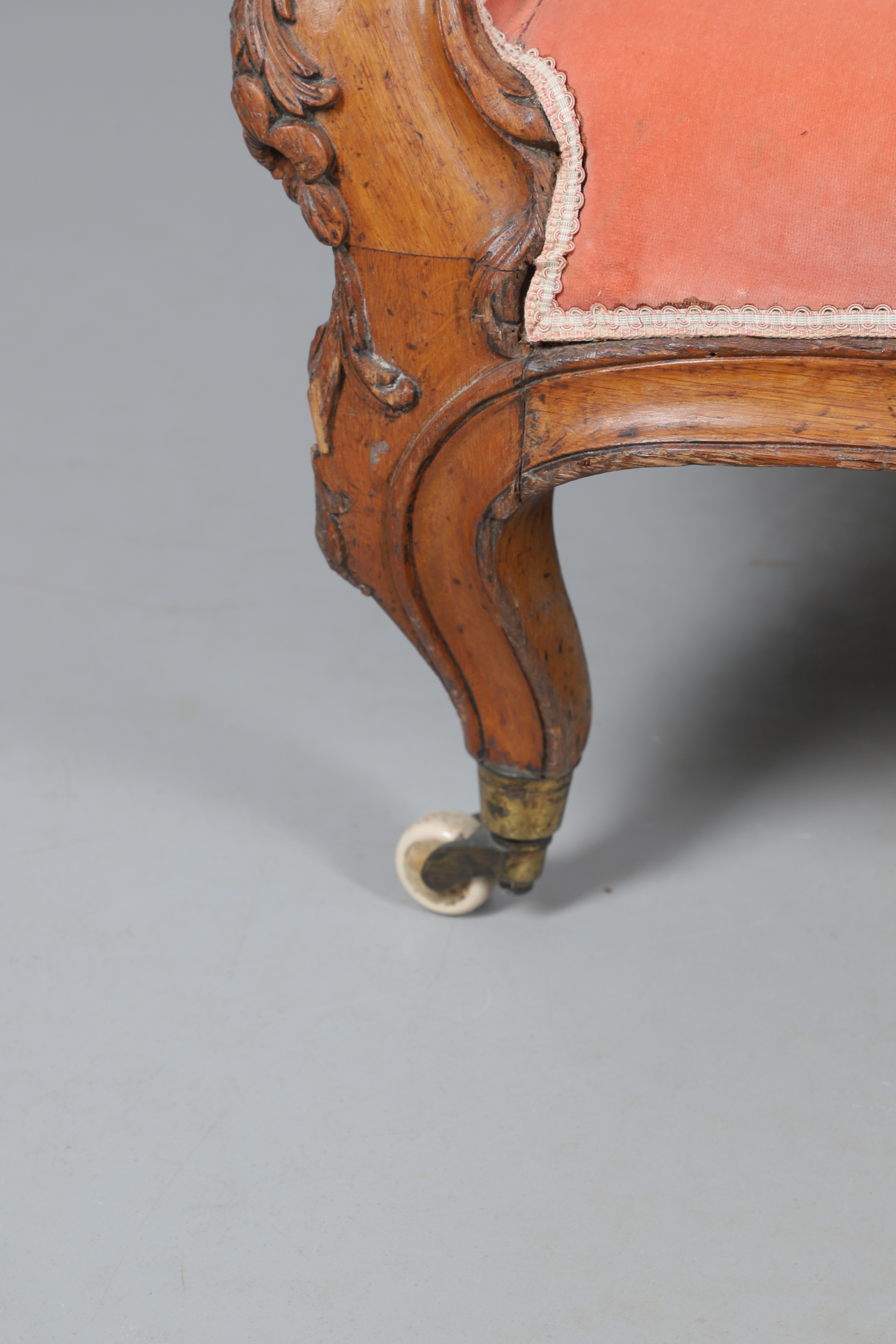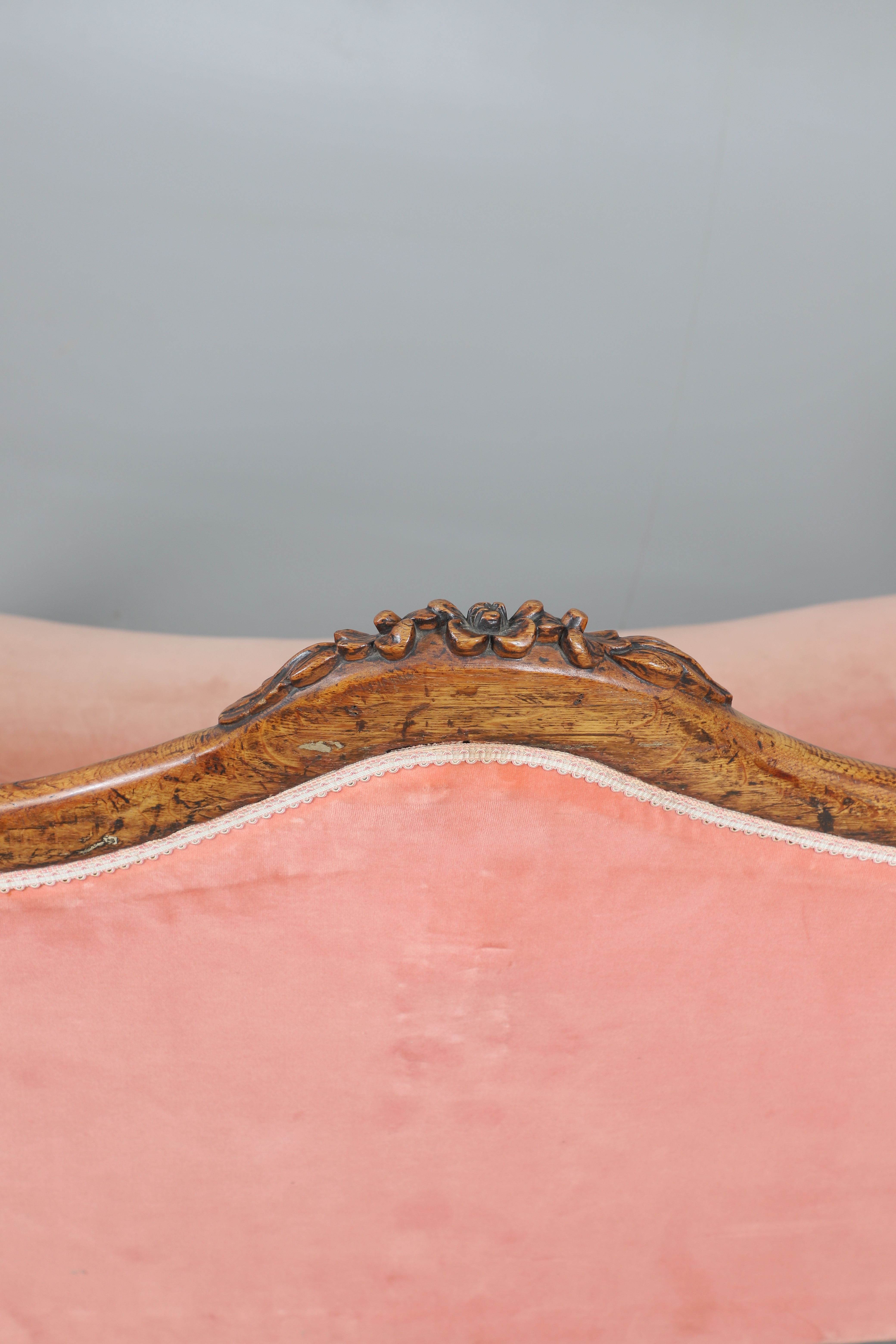 4486498. A VICTORIAN WALNUT DOUBLE SPOON BACK SHOWFRAME SETTEE.