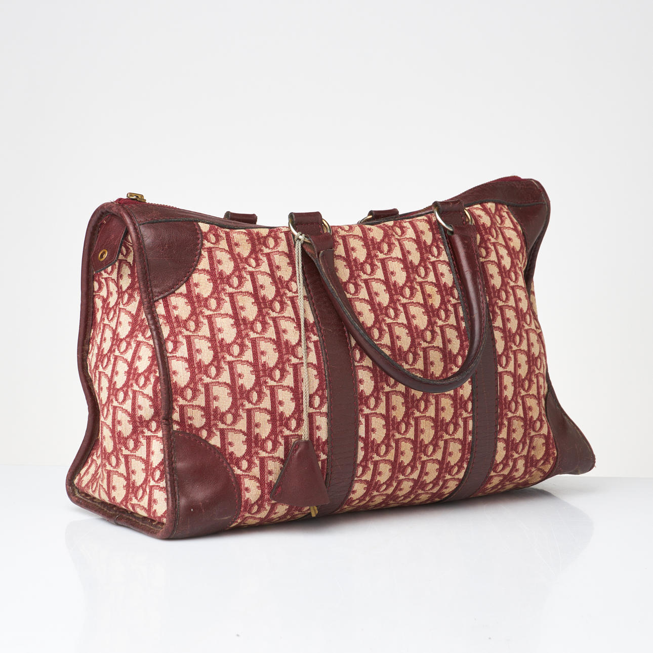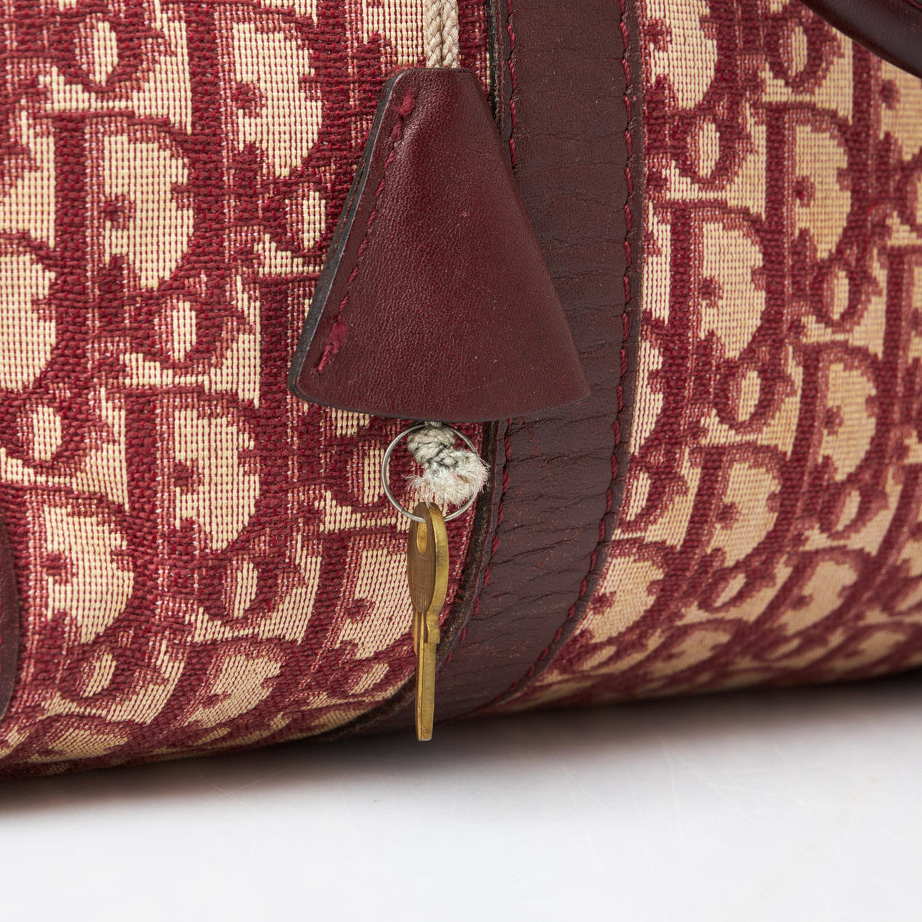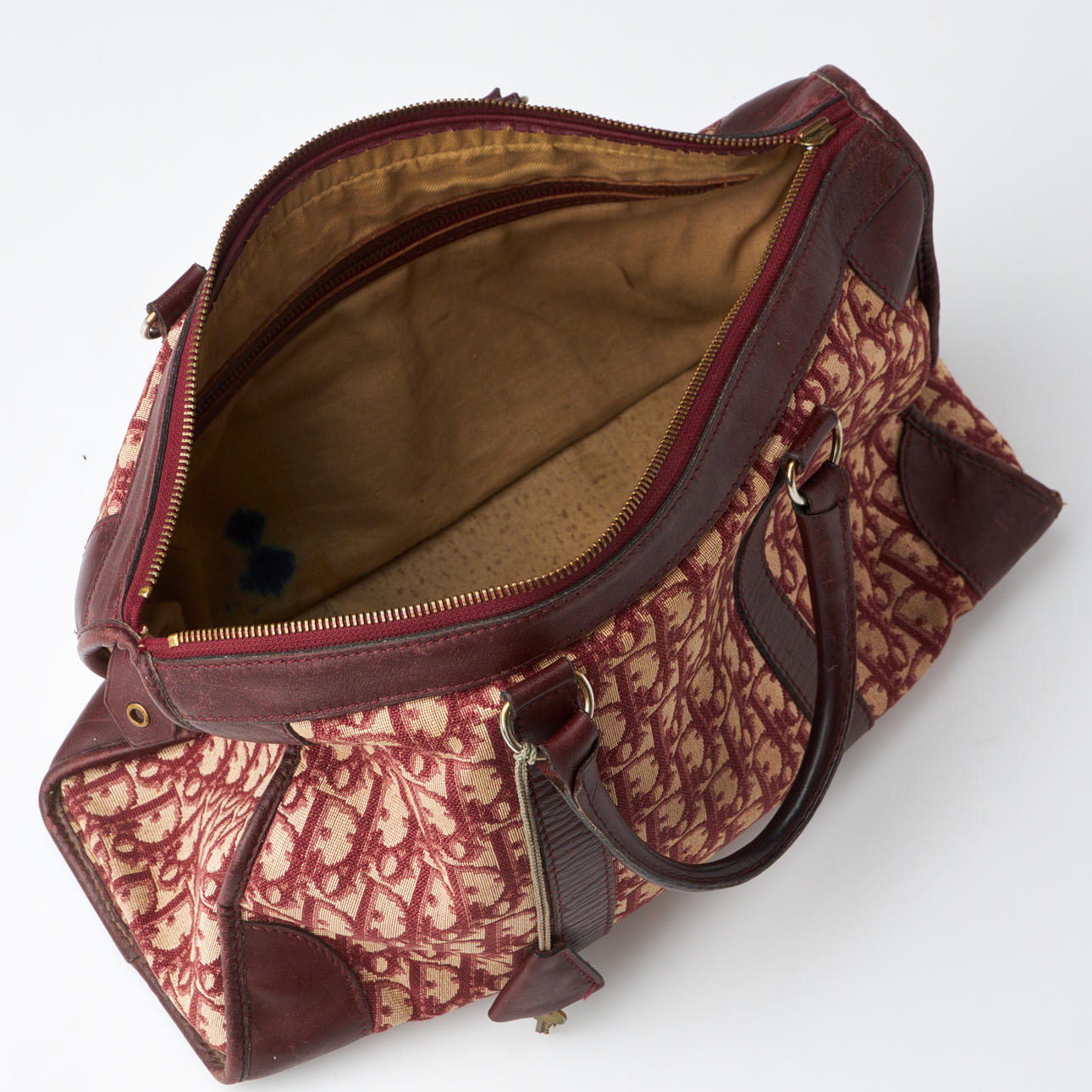 4486593. CHRISTIAN DIOR. Bag, monogram patterned textile, leather, inside with a compartment, label Christian Dior Bagages France.