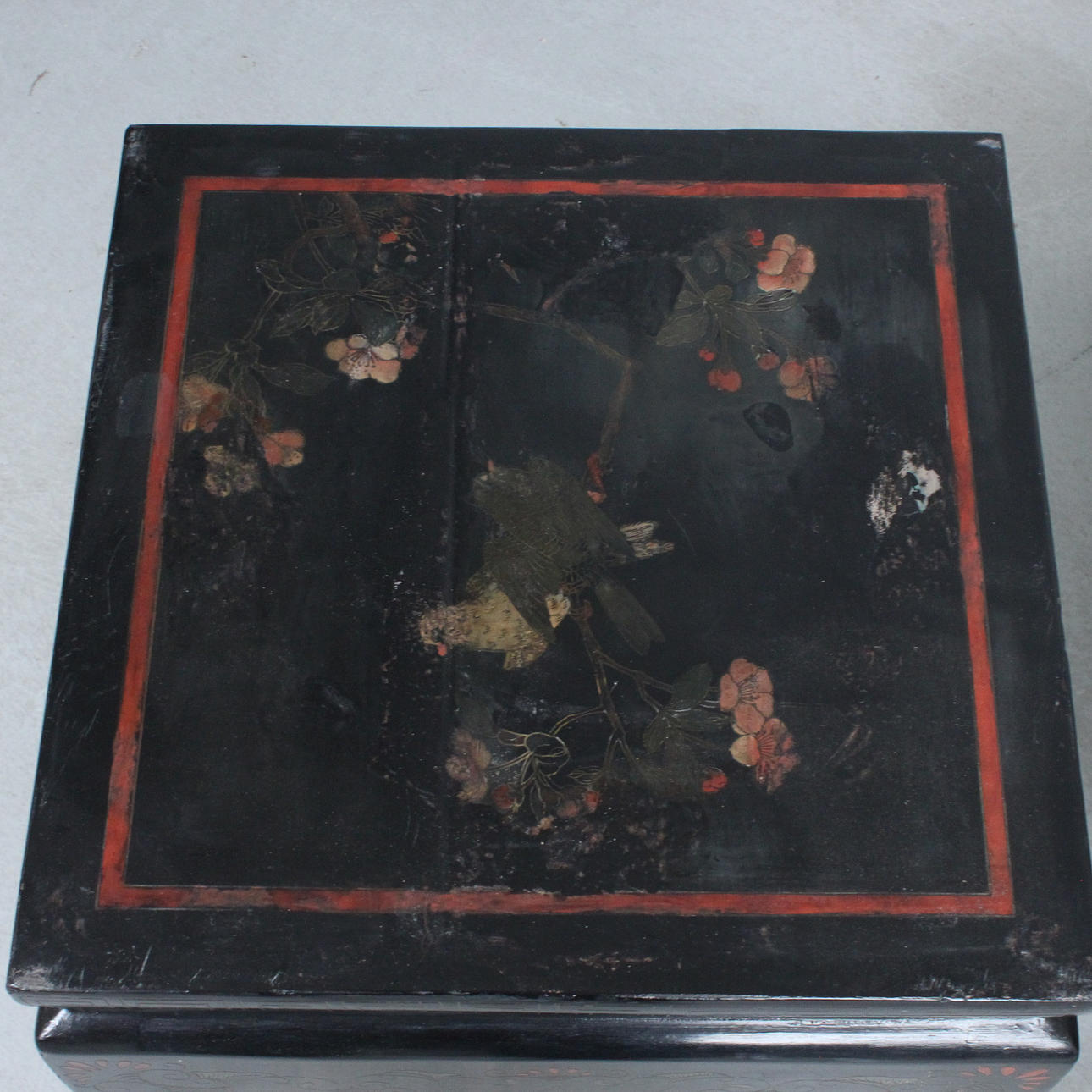 Two Chinese lacquer tables made of wood. painted. With ornaments