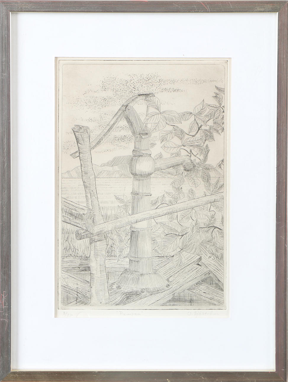 ULF SJÖSTRÖM. “The Pump”, etching, signed U. Sjöström.
