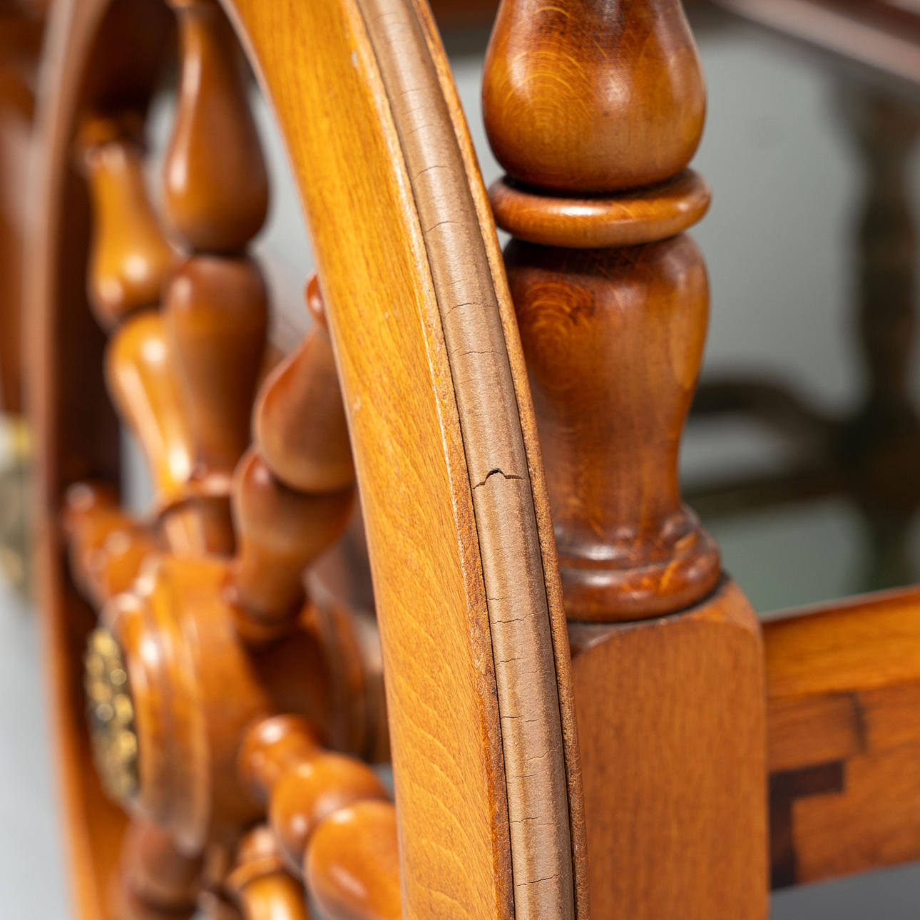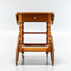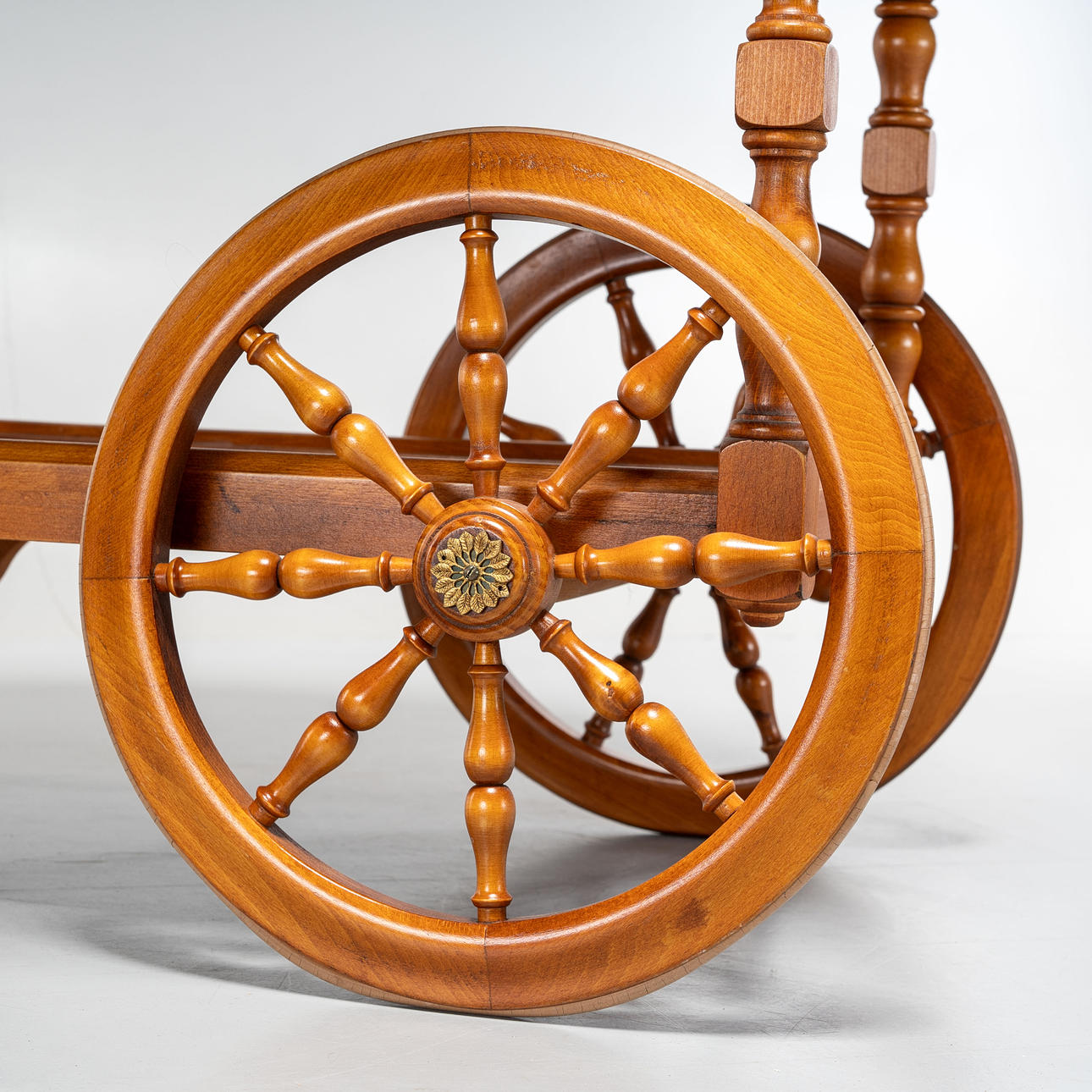 Folding side flaps, turned legs, large decorative wooden wheels with spokes