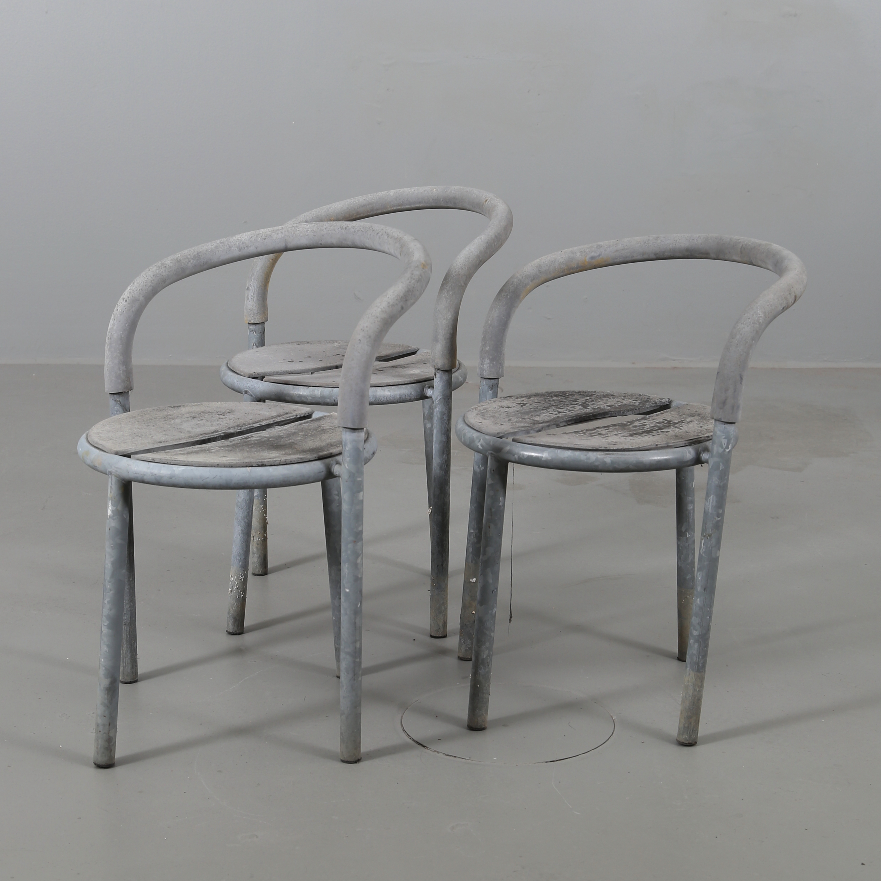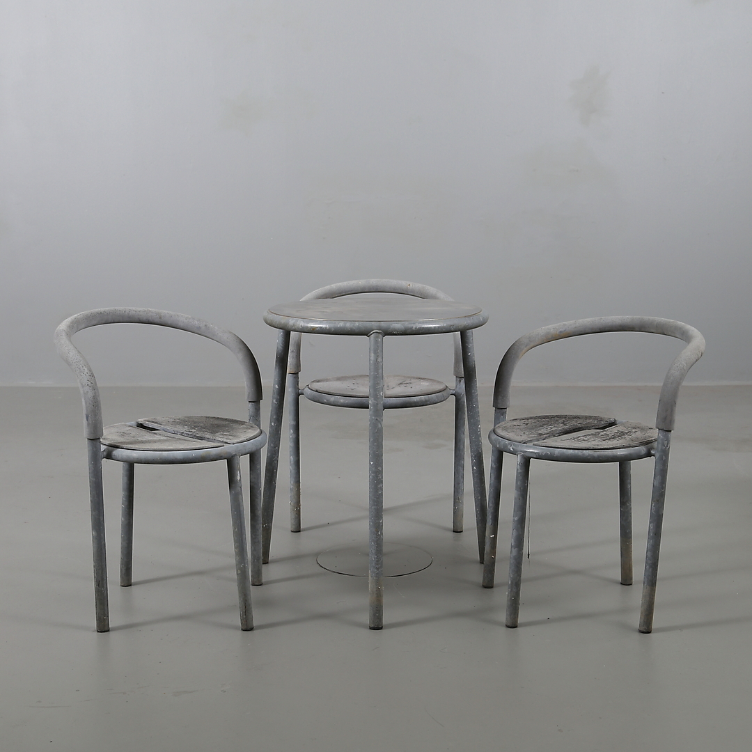 448997. NIELS GAMMELGAARD&LARS MATHIESEN. Cafe furniture consisting of three chairs and a table (4), Pelikan design, late 20th century.