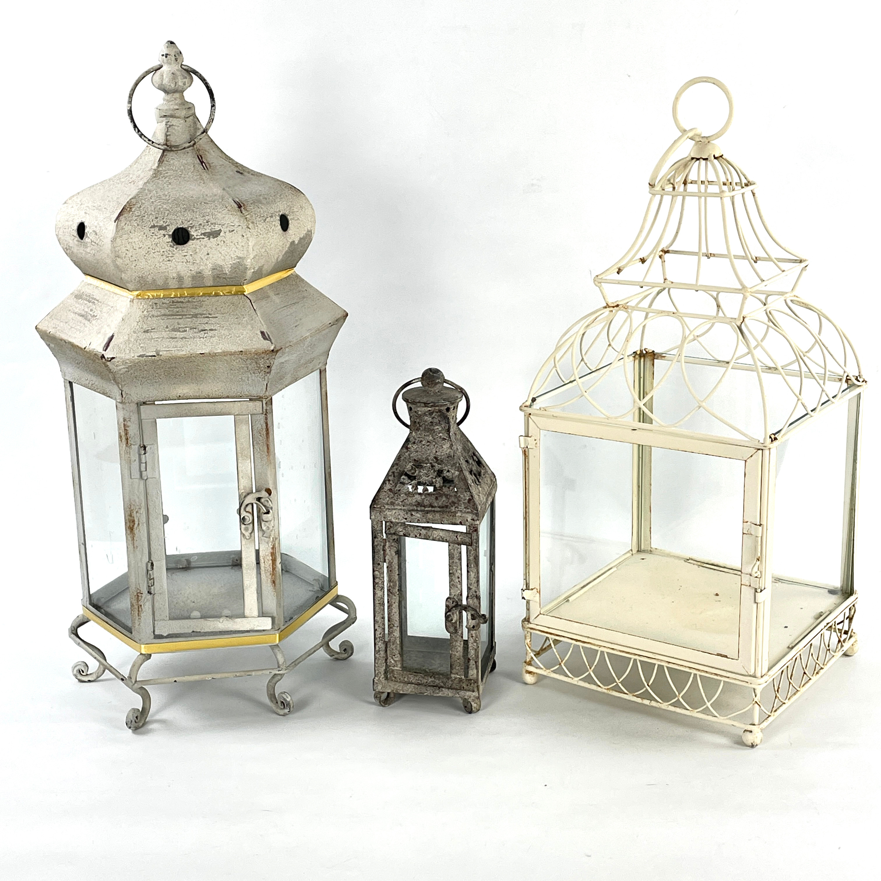 4490316. CANDLE LANTERNS, 3 pcs. Metal/glass, contemporary.