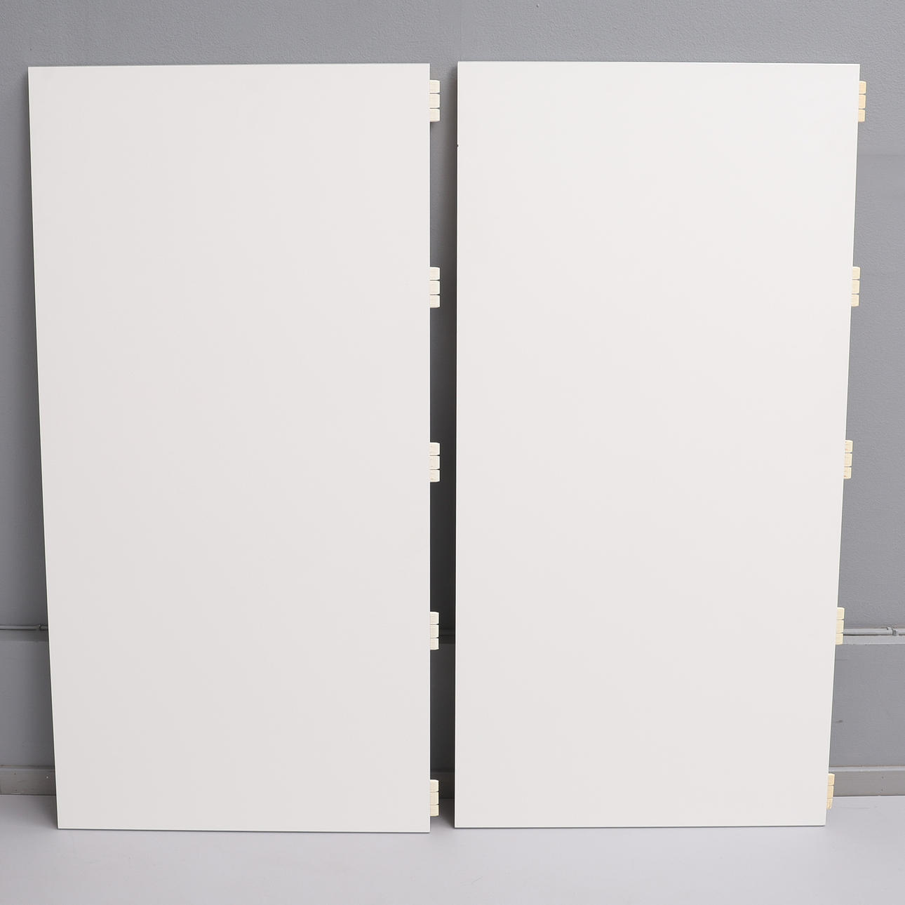 White laminated with aluminum edges, chrome-plated clamping legs, height 73 cm, board 180x120 cm, included two insert plates 60 cm each.