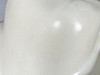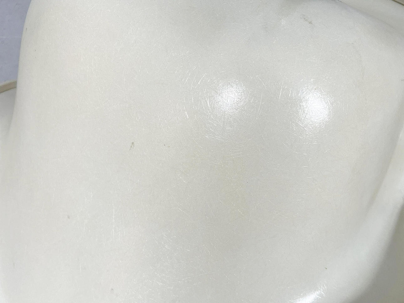 fiberglass bowl with brown padding, H-shaped chromed metal legs, with manufacturer's label on the underside,