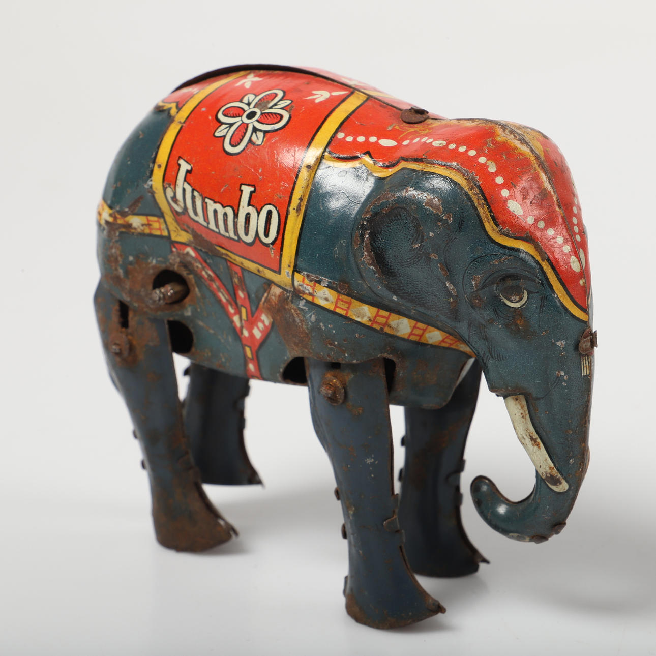 BLOMER & SCHULER. Toy lefant, “Jumbo”, lithographed plate with clockwork, Germany.