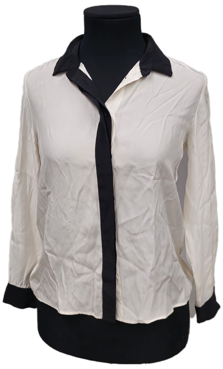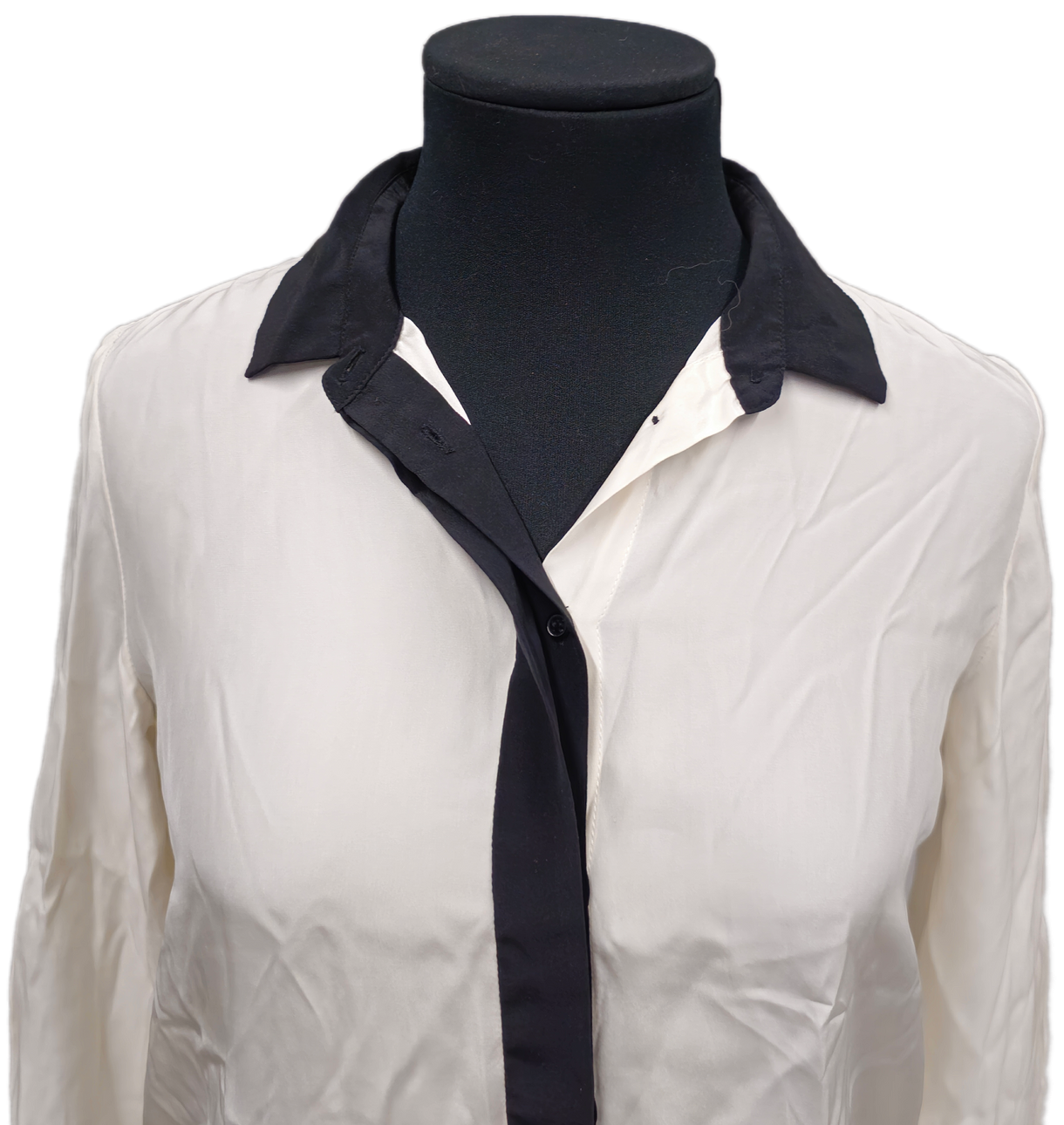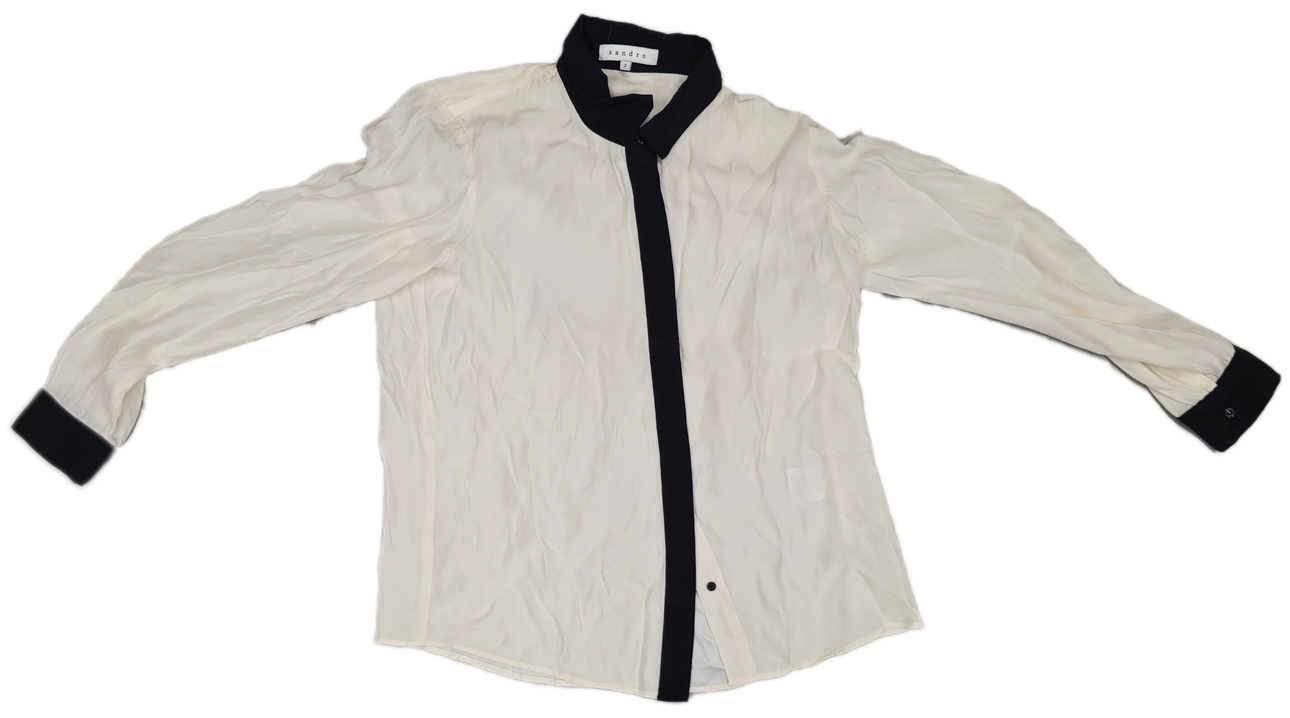 SANDRO. BICOLOR BLACK AND WHITE SILK SHIRT.