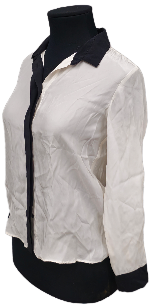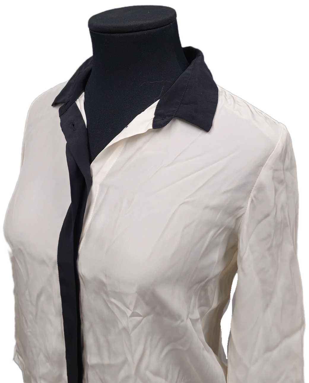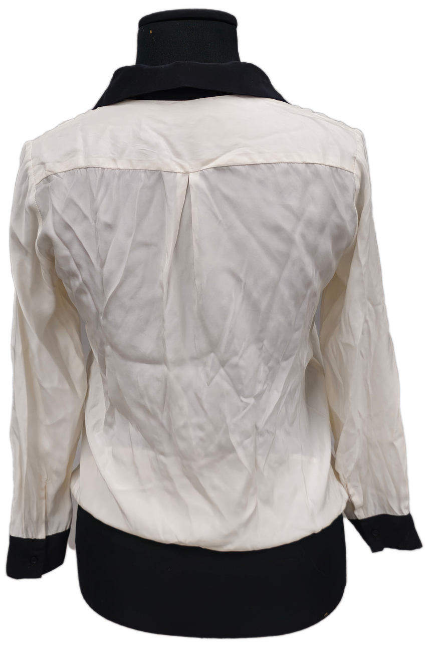 SANDRO. BICOLOR BLACK AND WHITE SILK SHIRT.