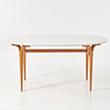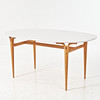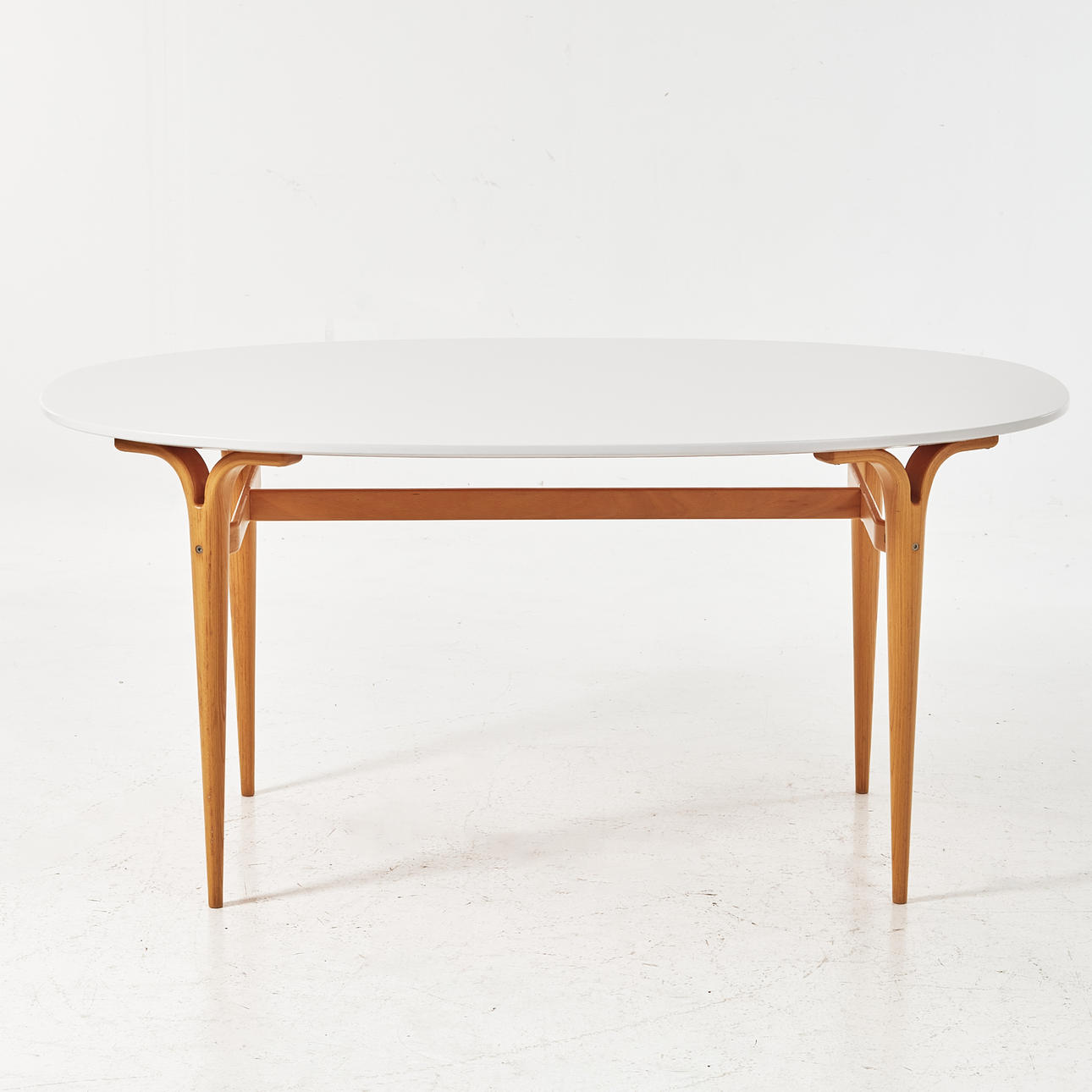 4494694. BRUNO MATHSSON. “Superellips”, table, Mathsson International, white lacquered table top, legs in oak.