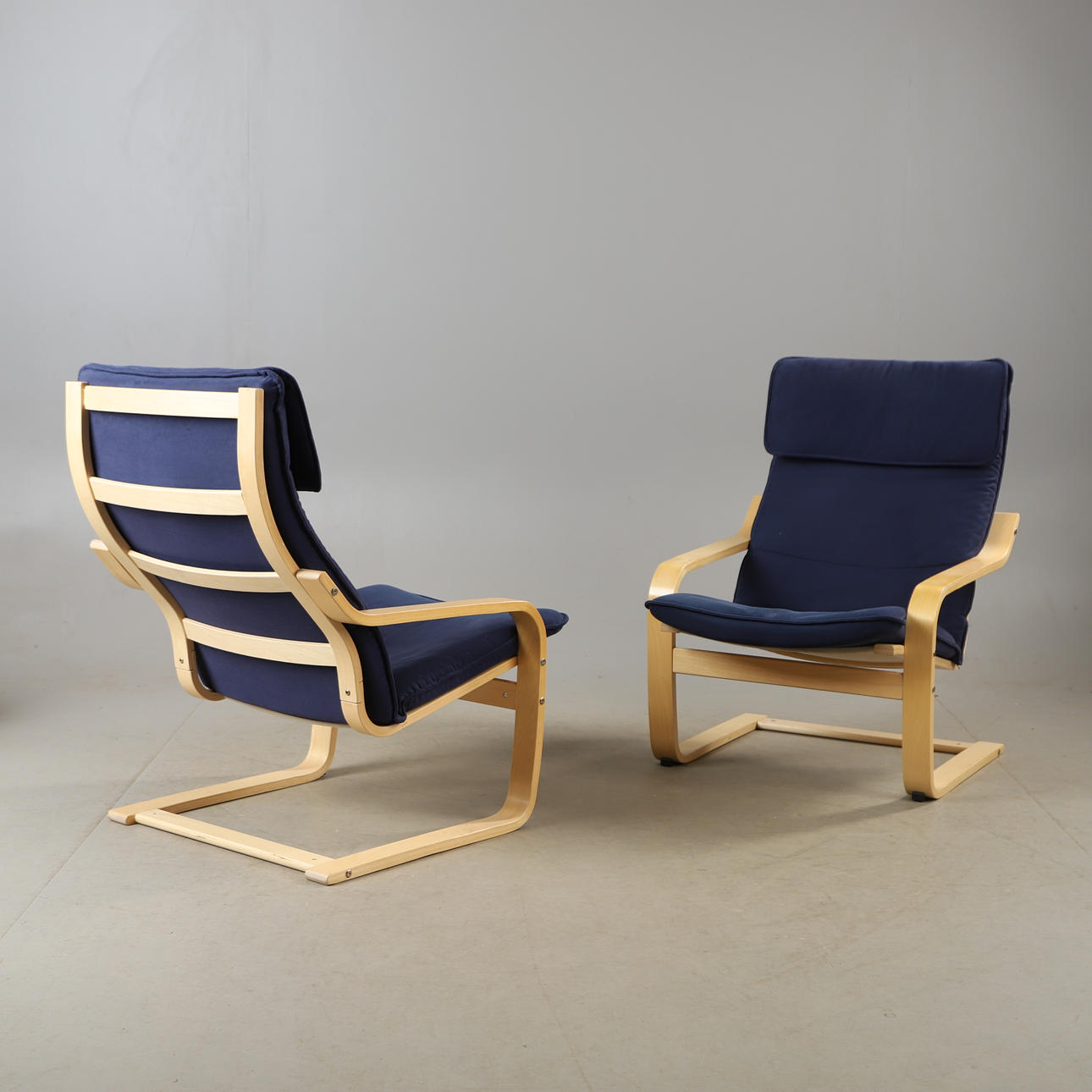 Armchairs length 68, width 79, seat height 39, height 97 cm.