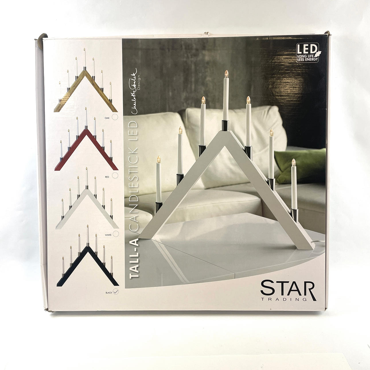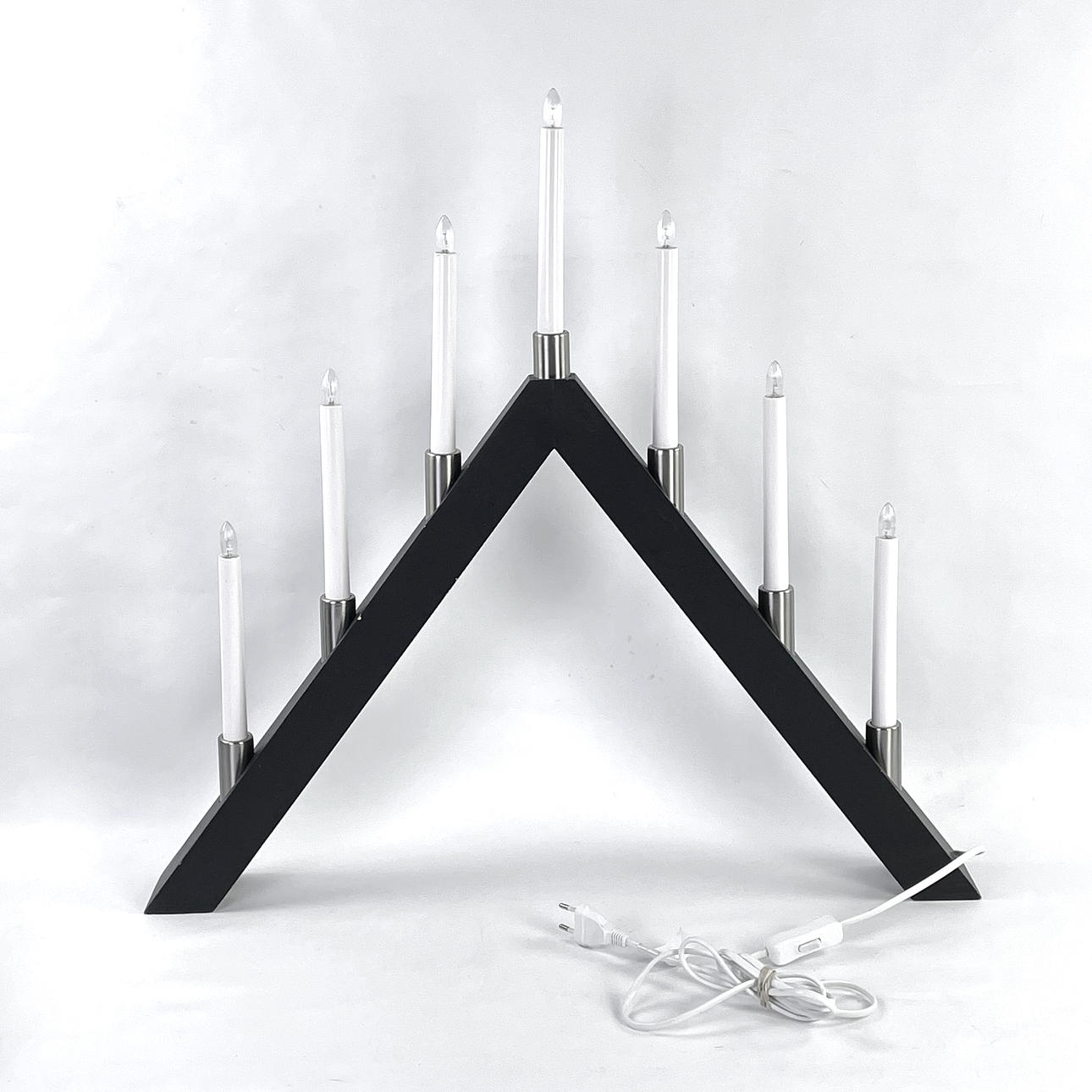 Black Advent candlestick with seven light arms from Star Trading, in model “Tall-A”. In original packaging.