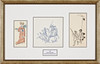 Mixed media, 3 pcs, co-framed, varying sizes 20 x 10 cm to 16 x 8 cm. Frame dimensions 40 x 60 cm. Signed Brusewitz.